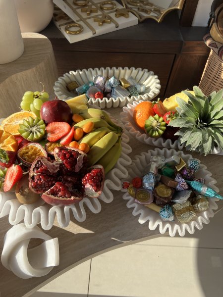 جاط فواكه ضيفة نحاس هندي قاعدة رخام ابيض