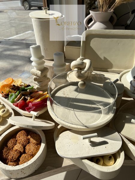 مضيفة رخام مع صحون مكسرات نحاس هندي غطا زجاج D122