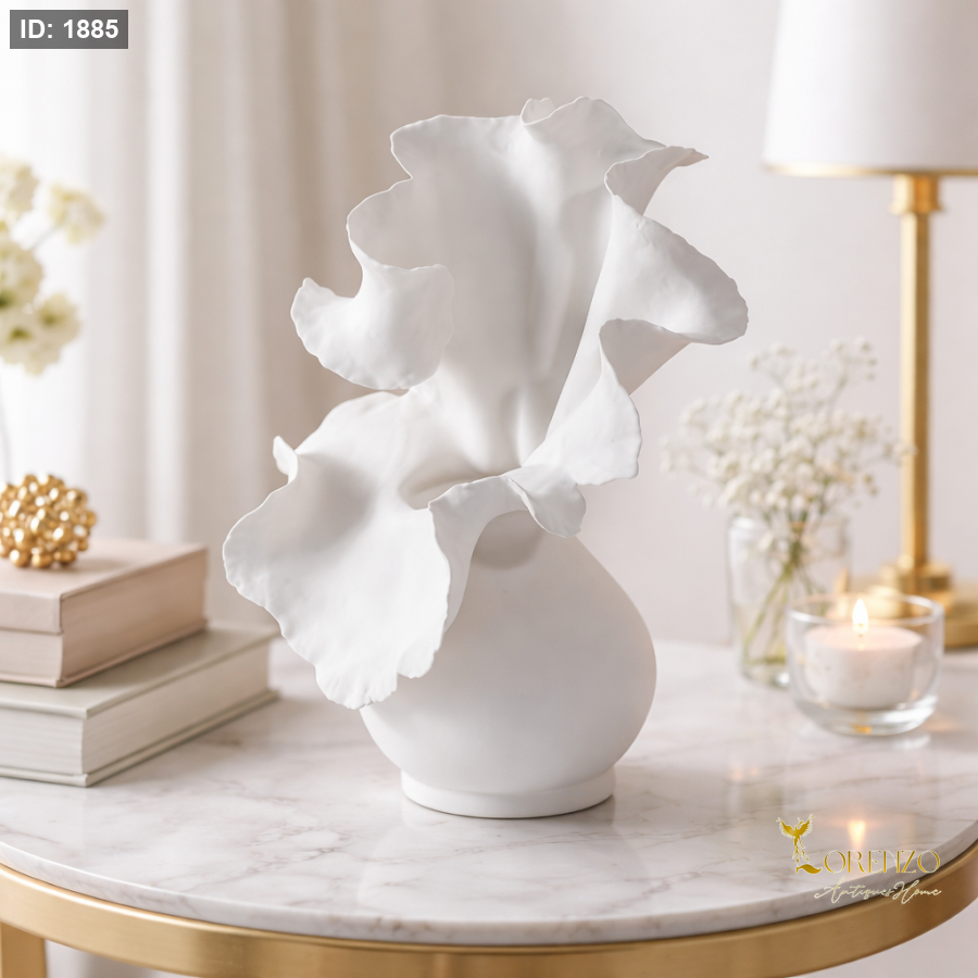 فازة ديكور أنيقة بتصميم فني مميز مستوحى من أشكال الطبيعة الناعمة، تضيف لمسة فخامة وهدوء لأي مساحة في منزلك. تتميز بتفاصيلها المنحنية والحواف المتموجة التي تعكس ذوقاً راقياً وعصرياً في الديكور.