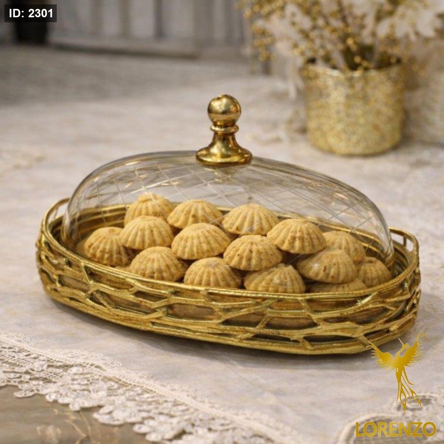 مضيفة نحاس هندي بيضاوي اطار مشبك ذهبي