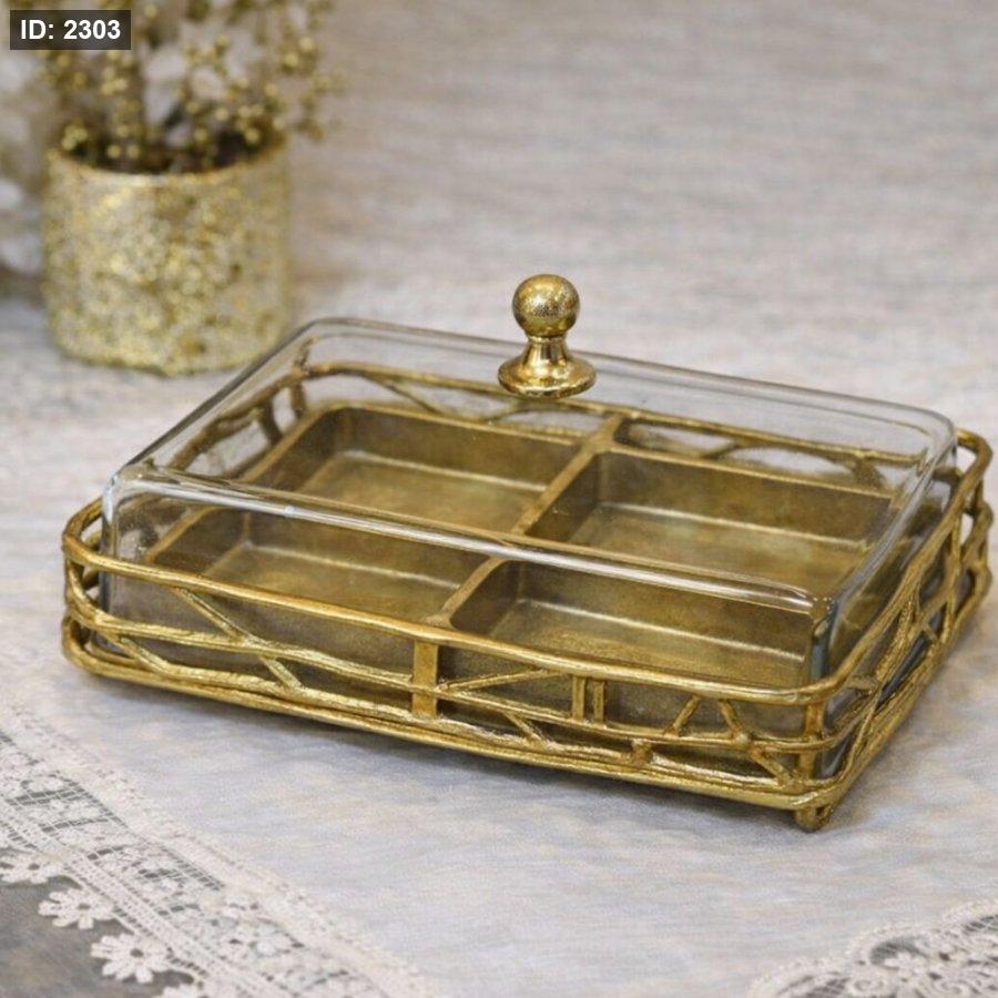 مضيفة نحاس هندي مستطيل اطار مشبك ذهبي