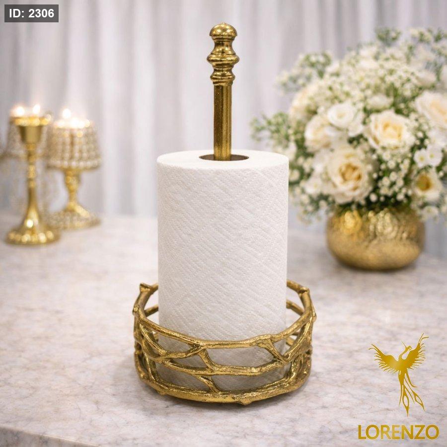 حمالة ورق - ستاند محارم نحاس هندي مشبك ذهبي