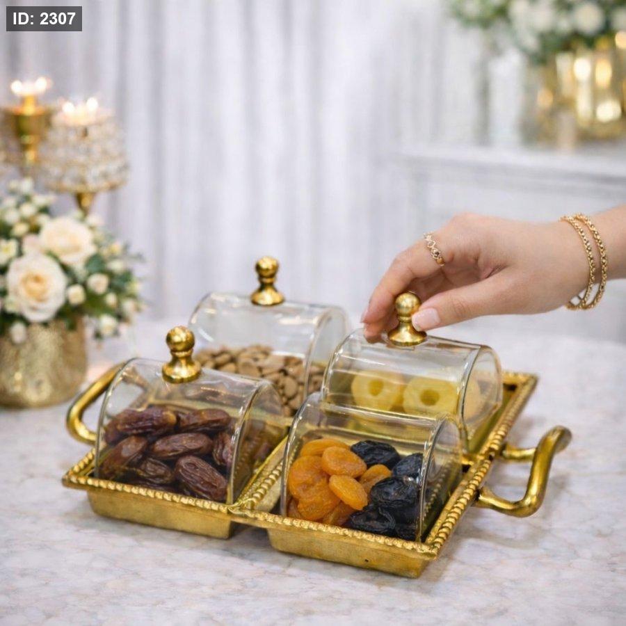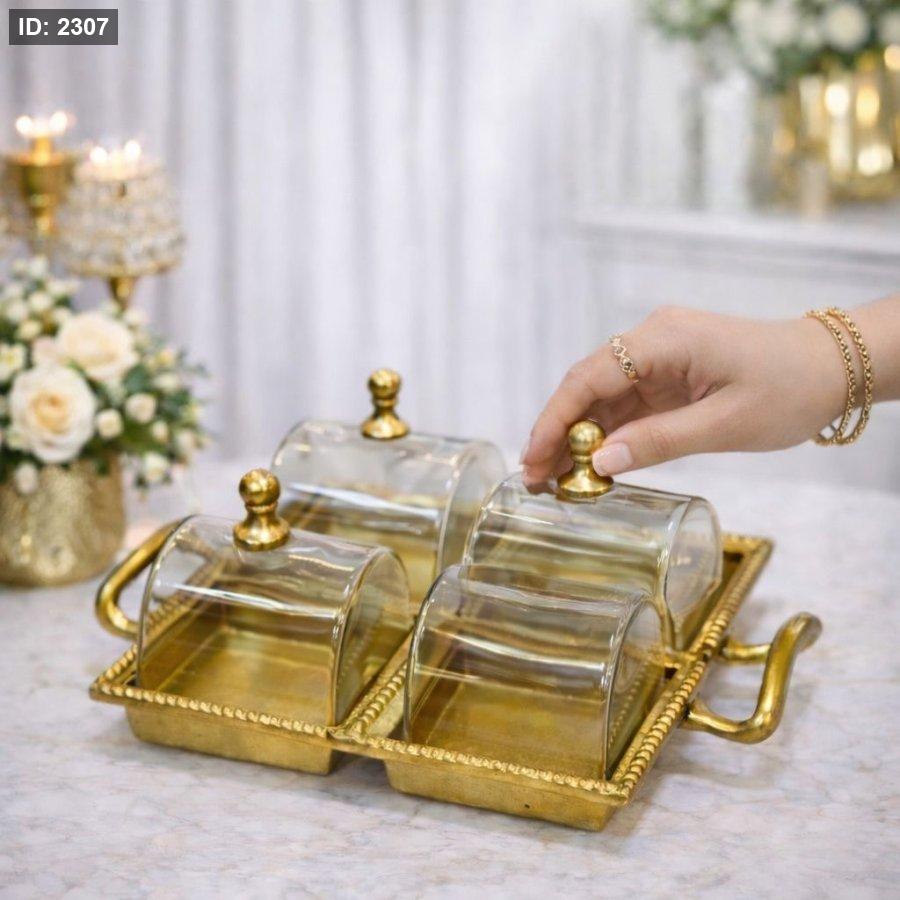 مضيفة رباعية مع غطاء نحاس هندي اطار ذهبي