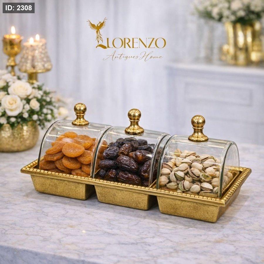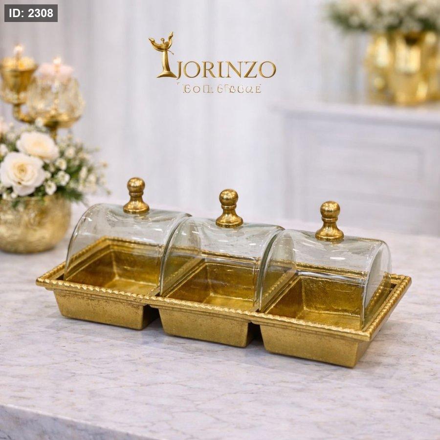 مضيفة ثلاثية مع غطاء نحاس هندي اطار ذهبي