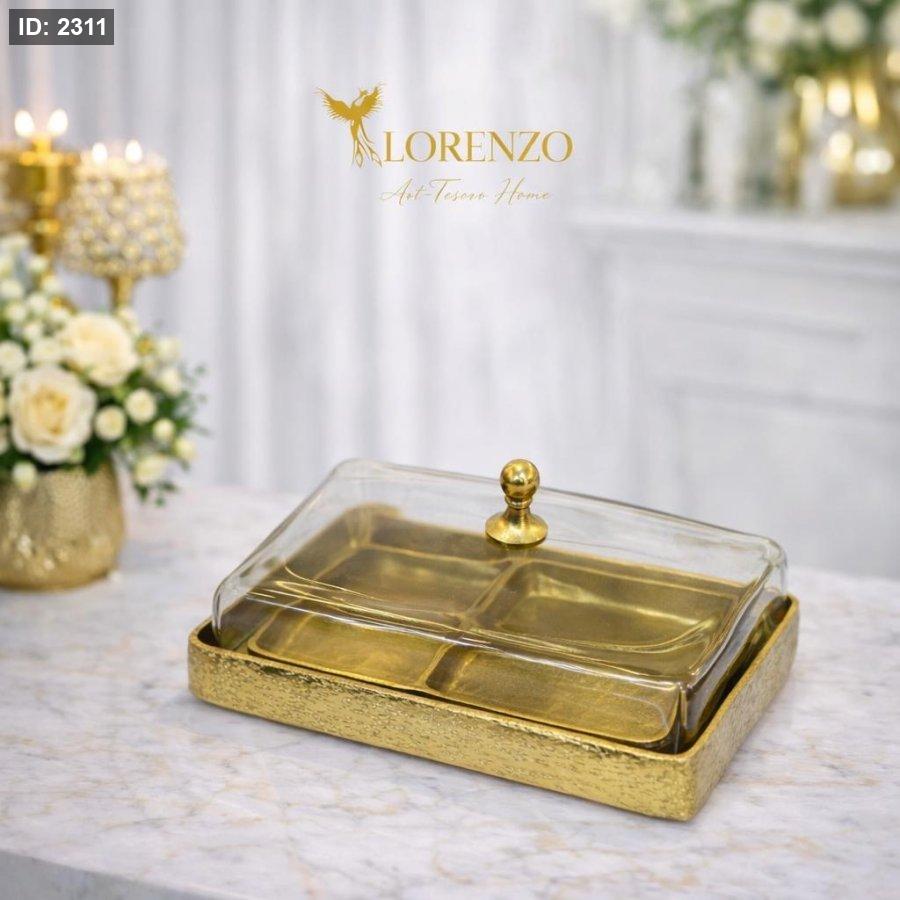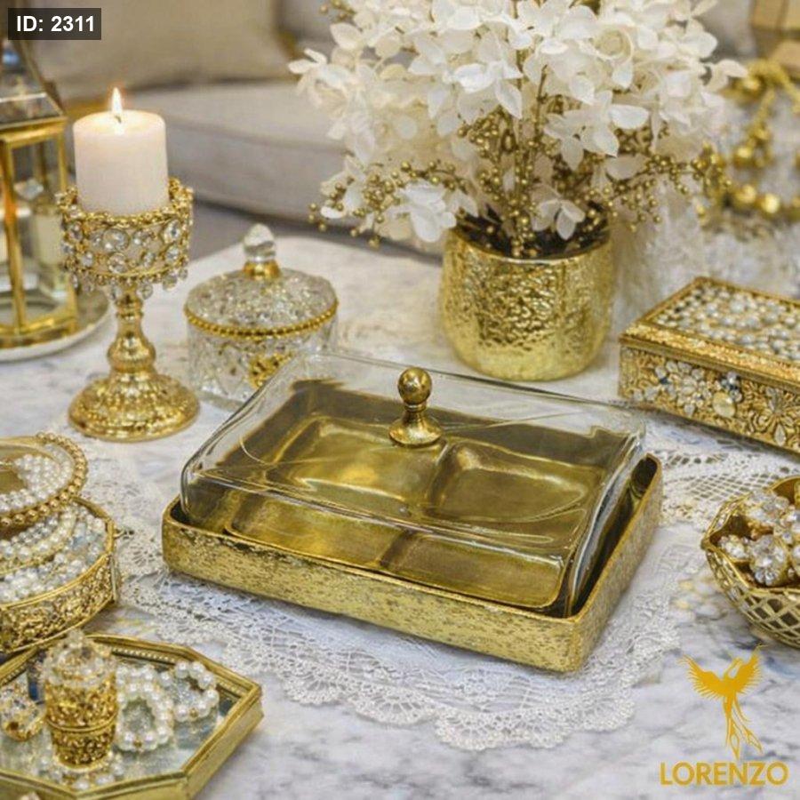 مضيفة مستطيل مقسمة مع غطاء نحاس هندي اطار ذهبي