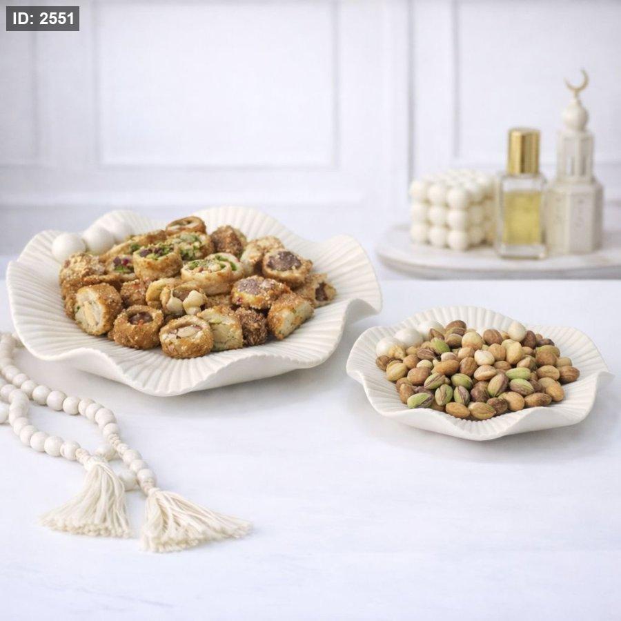 صينية "تشارمد" مصممة بشكلين دائريين أنيقين من الأمام، وتتميز بتصميم أنيق وانسيابي، مكمل بخطوط فريدة، مما يجعلها قطعة مركزية رائعة للتقديم والعرض. سواءً لحفلات الزفاف أو الحفلات أو أي احتفال آخر، تُضفي هذه الصينية لمسة جمالية على مناسباتكم مع توفير عملية مميزة. ارتقِ بتجربة ضيافتكم مع صينية "تشارمد"، حيث تلتقي الأناقة بالسحر.