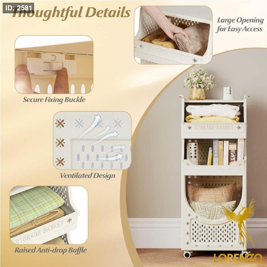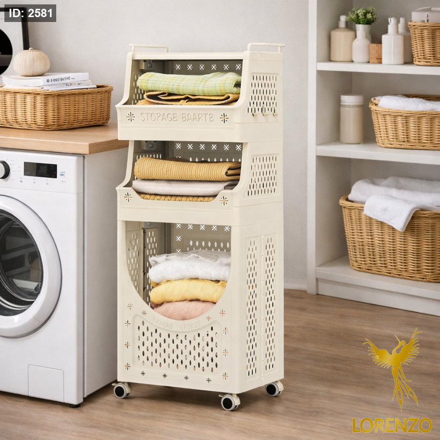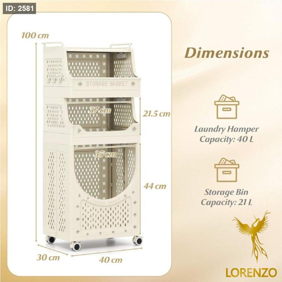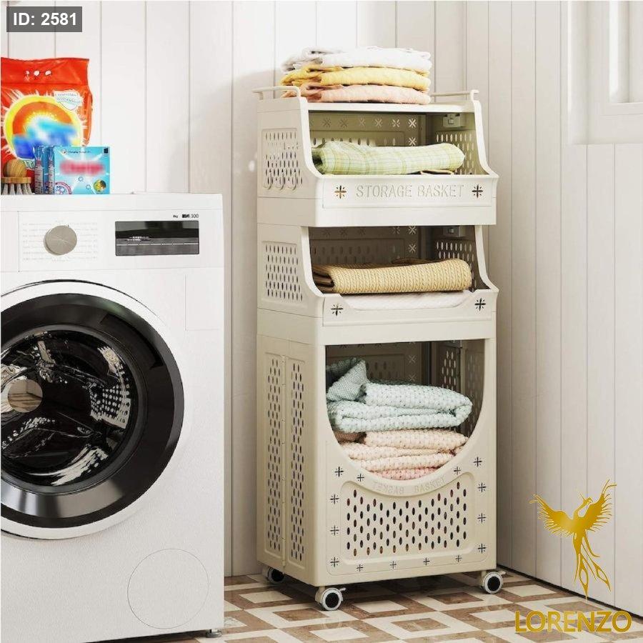 سلة غسيل وتخزين متعددة الطبقات بعجلات – تصميم موفّر للمساحة