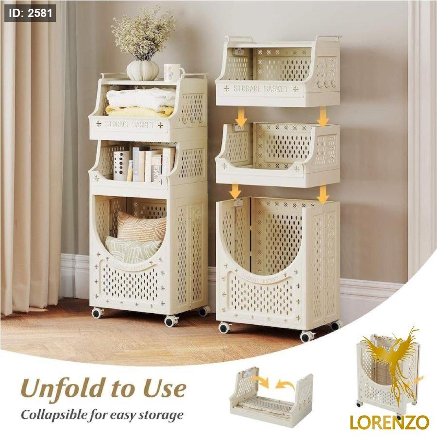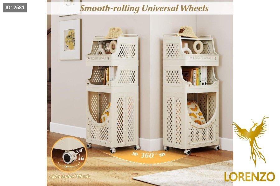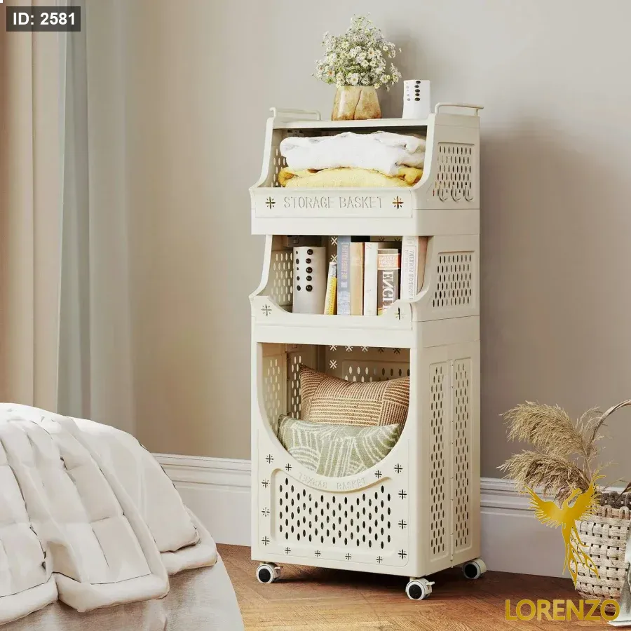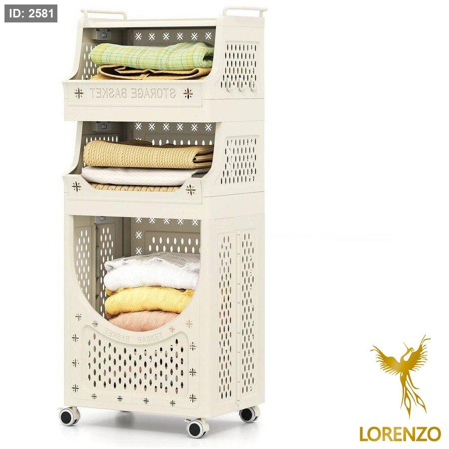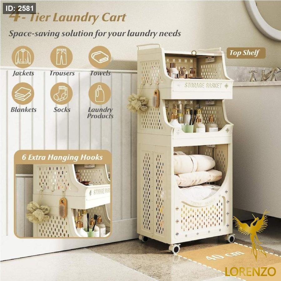 سلة غسيل وتخزين متعددة الطبقات بعجلات – تصميم موفّر للمساحة