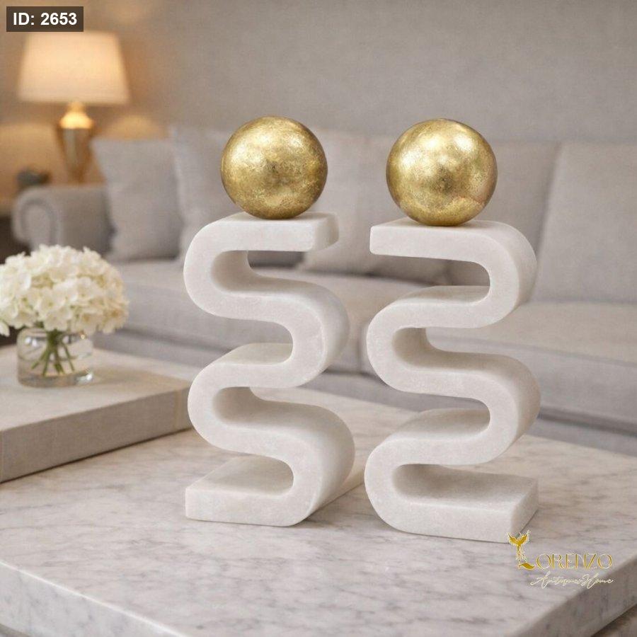 طقم شمعدان رخام مع طابة ذهبية 1-23