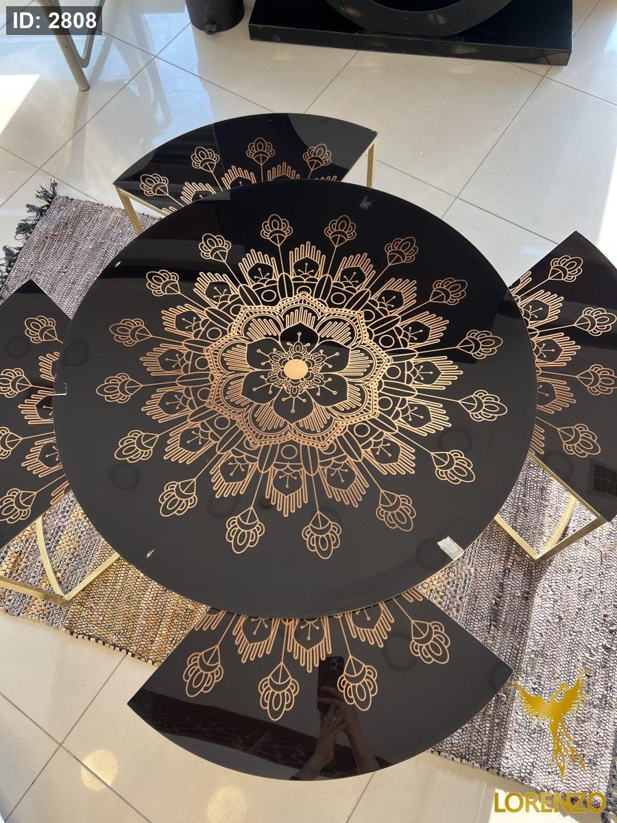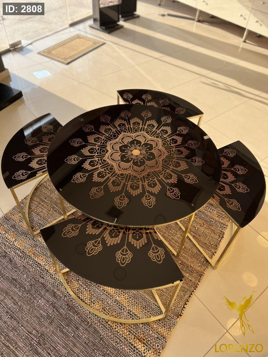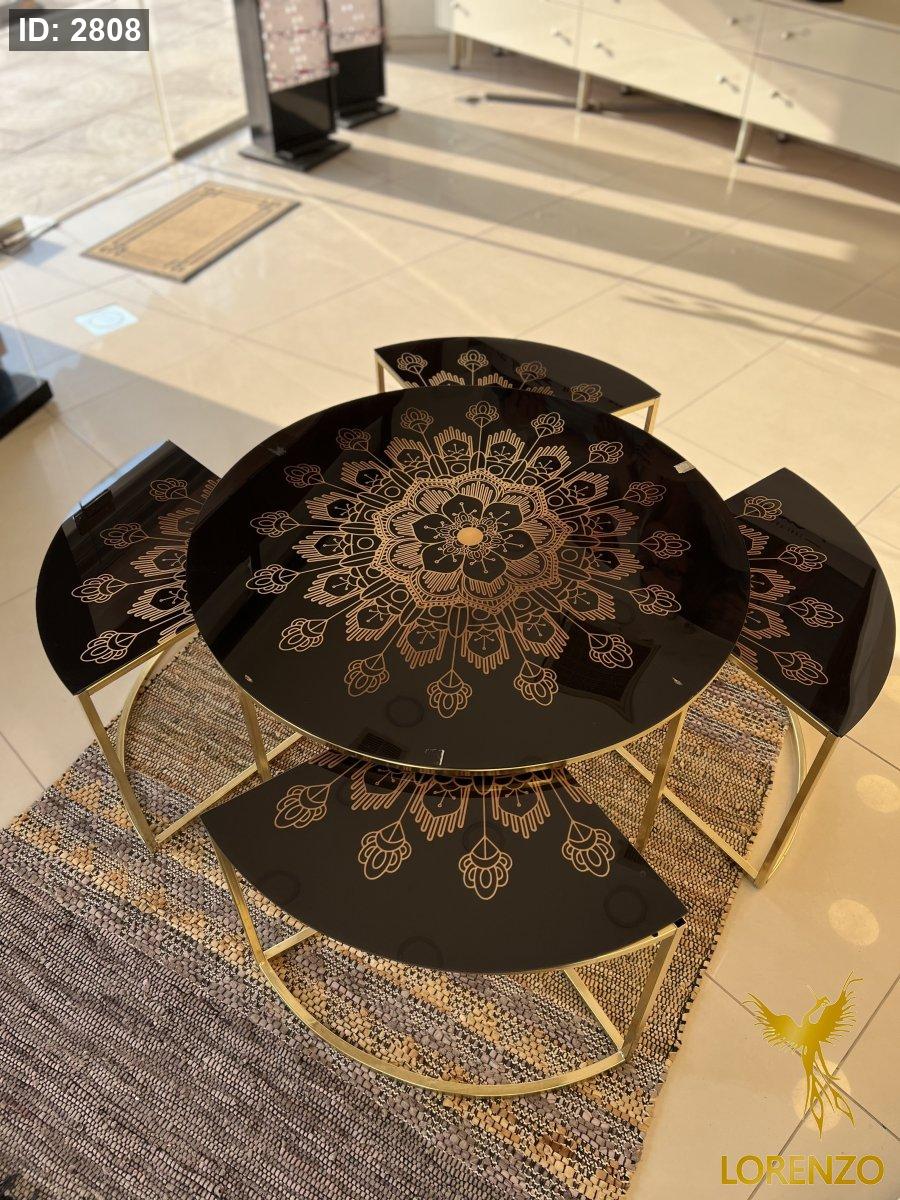 تصميم مستوحى من الفن الشرقي بلمسة عصرية، مكوّن من طاولة دائرية مع 4 طاولات نصف دائرية تتداخل بسلاسة تحتها.