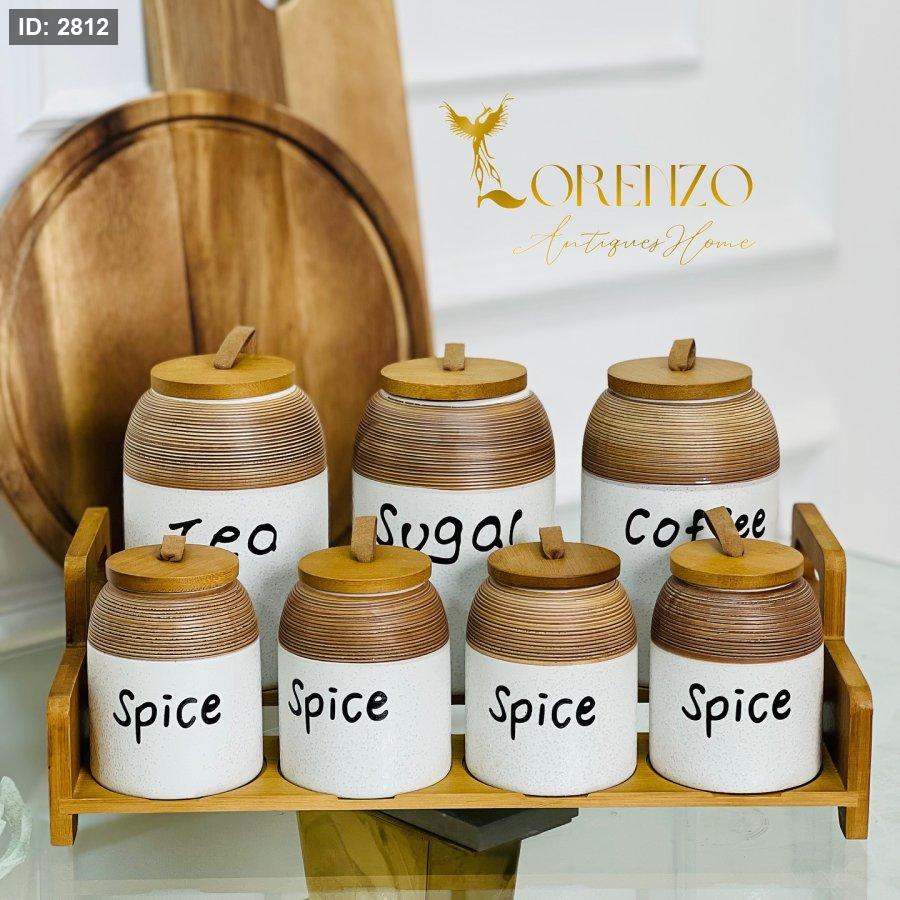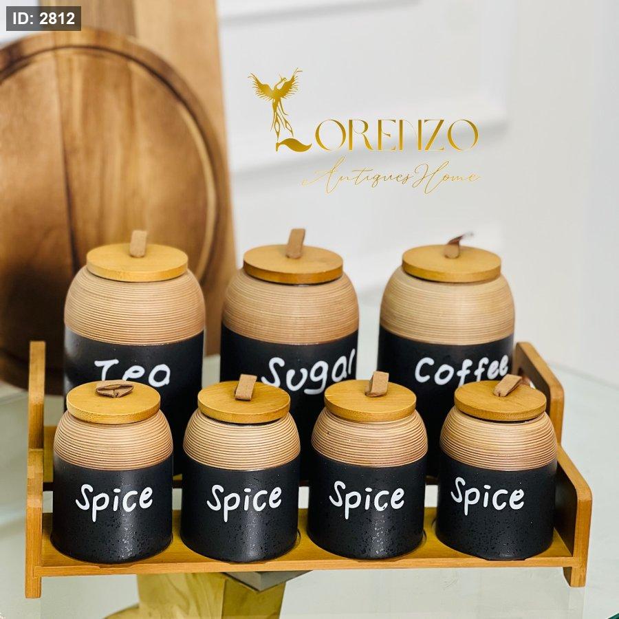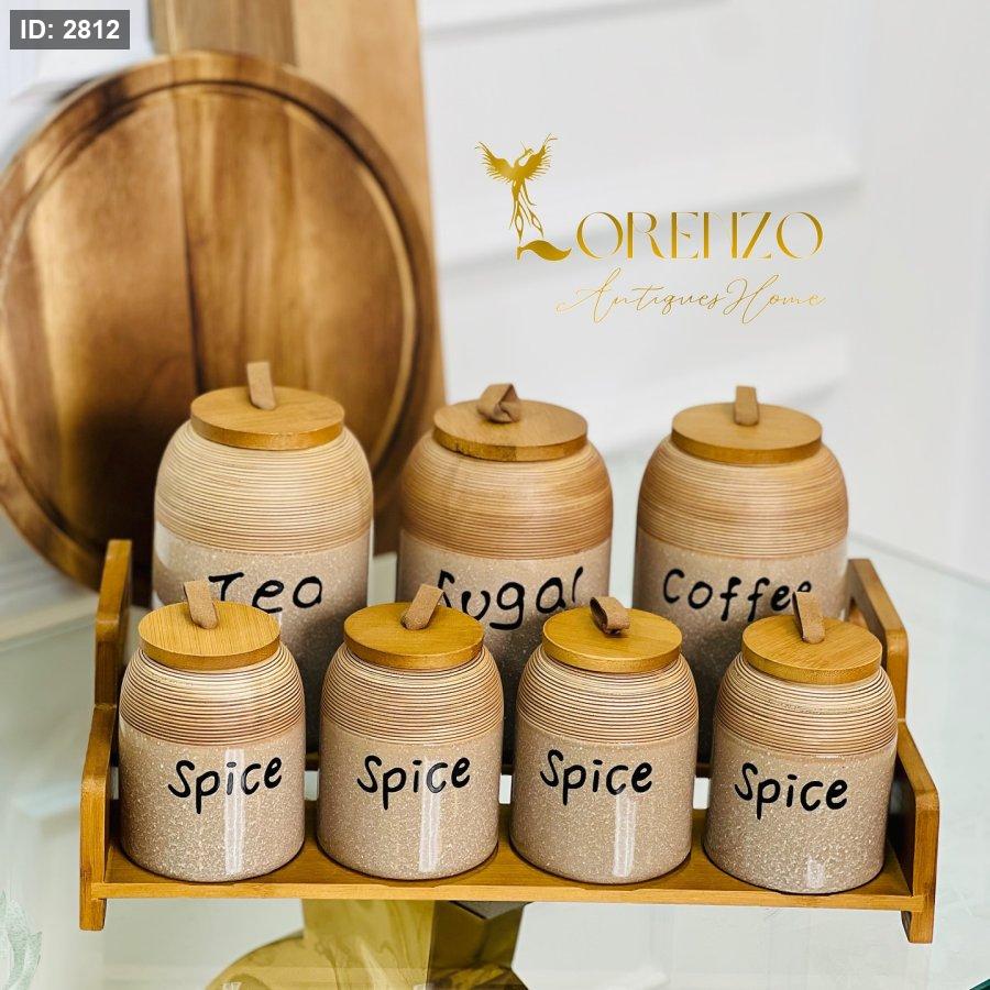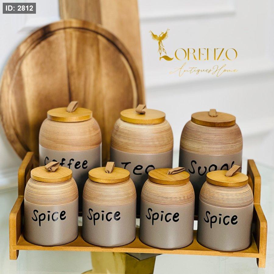 طقم سكريات 7 قطع مع ستاند خشب بامبو