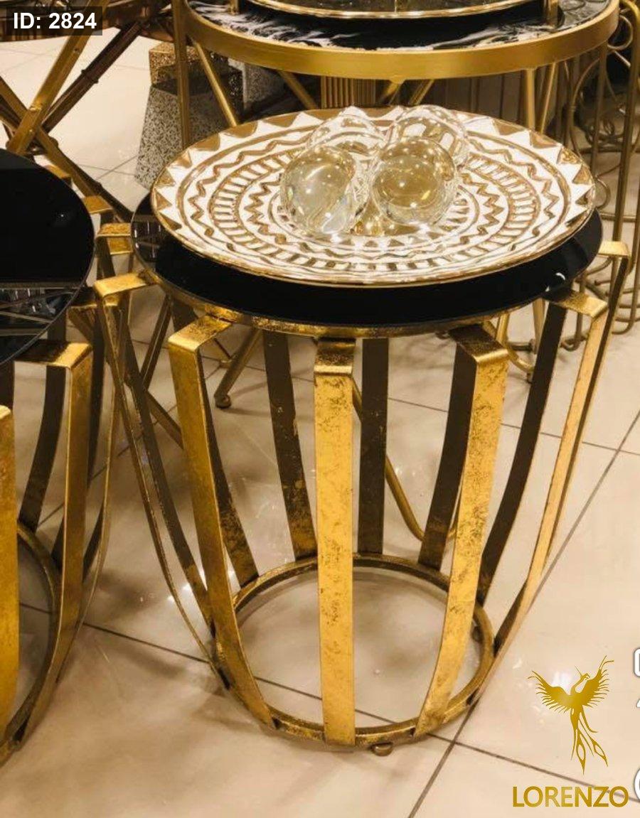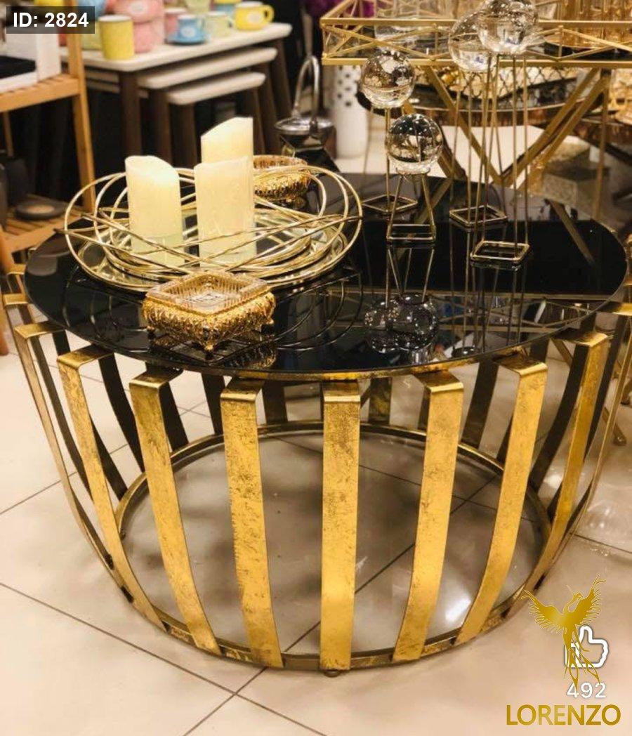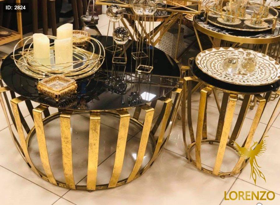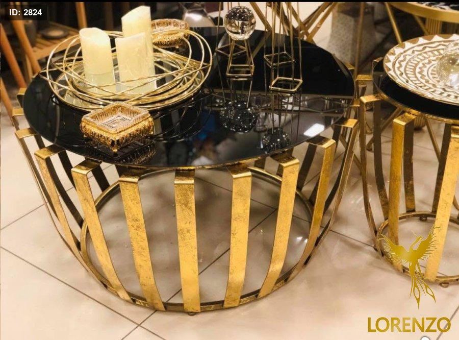 طقم طاولة وسط أسود اطار ذهبي معتق مع سكملة