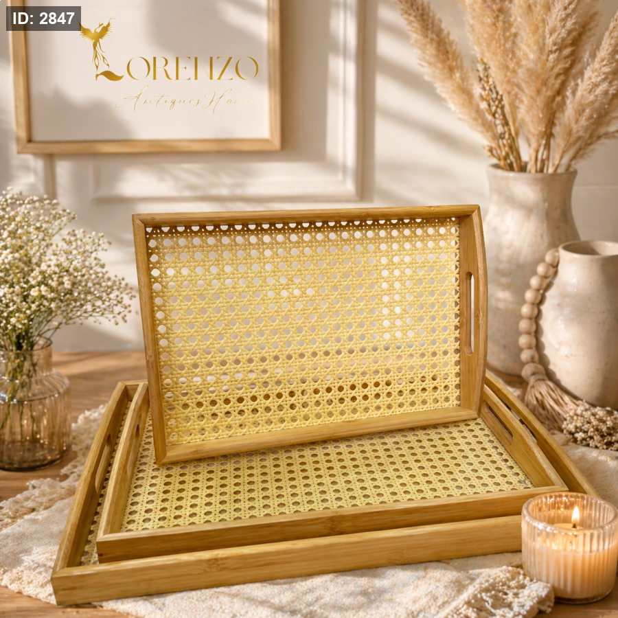 صواني خشبية بقاعدة قش 3 قطع