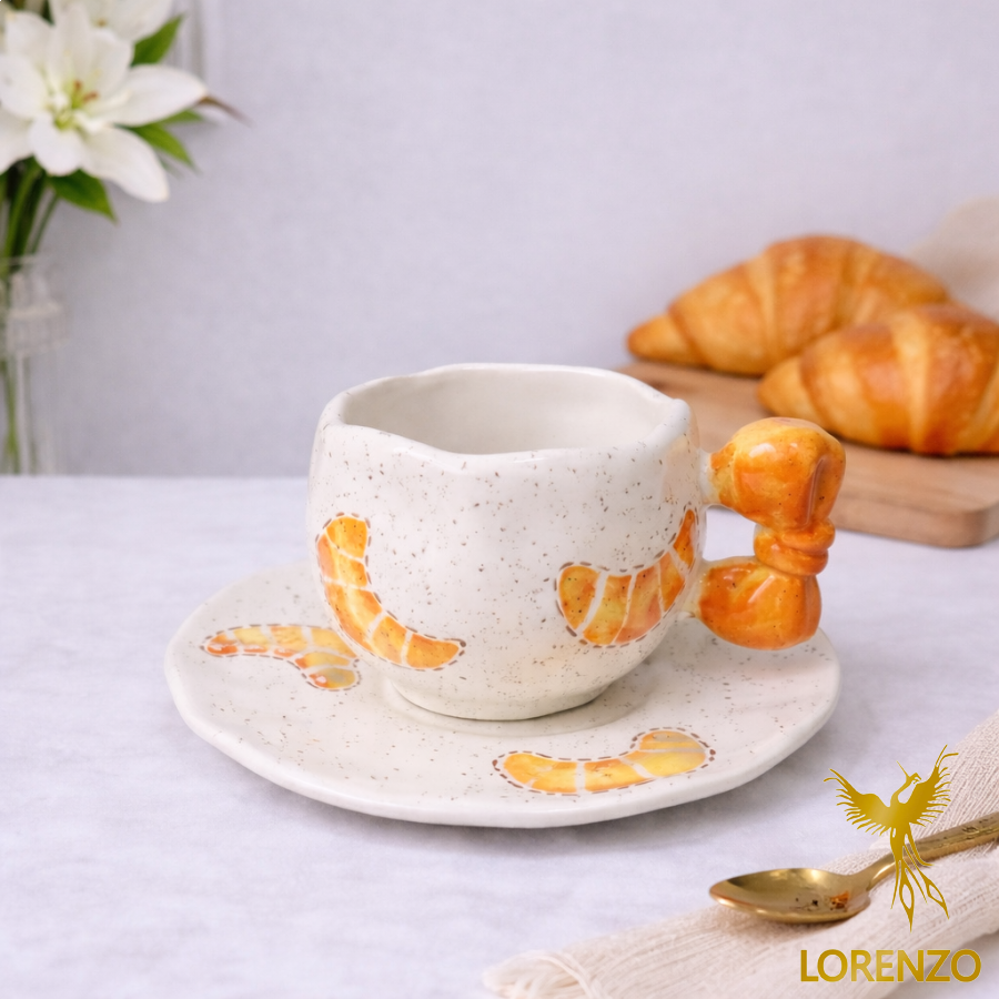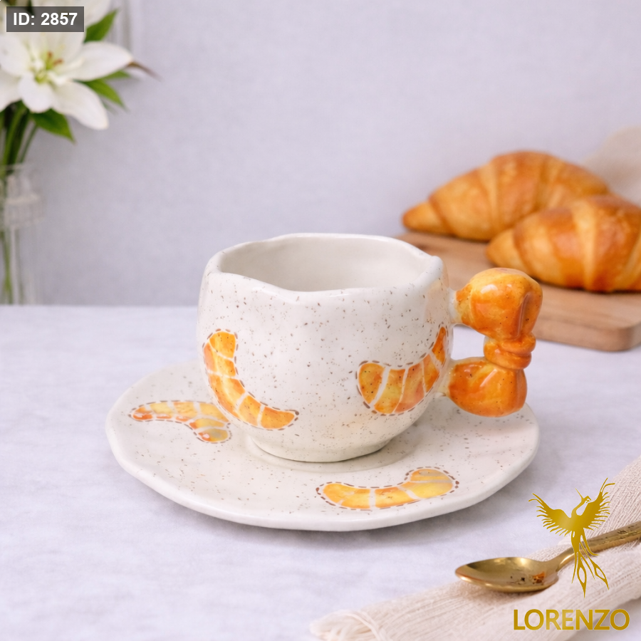 مج سيراميك مع صحن – تصميم خبز (كرواسون)