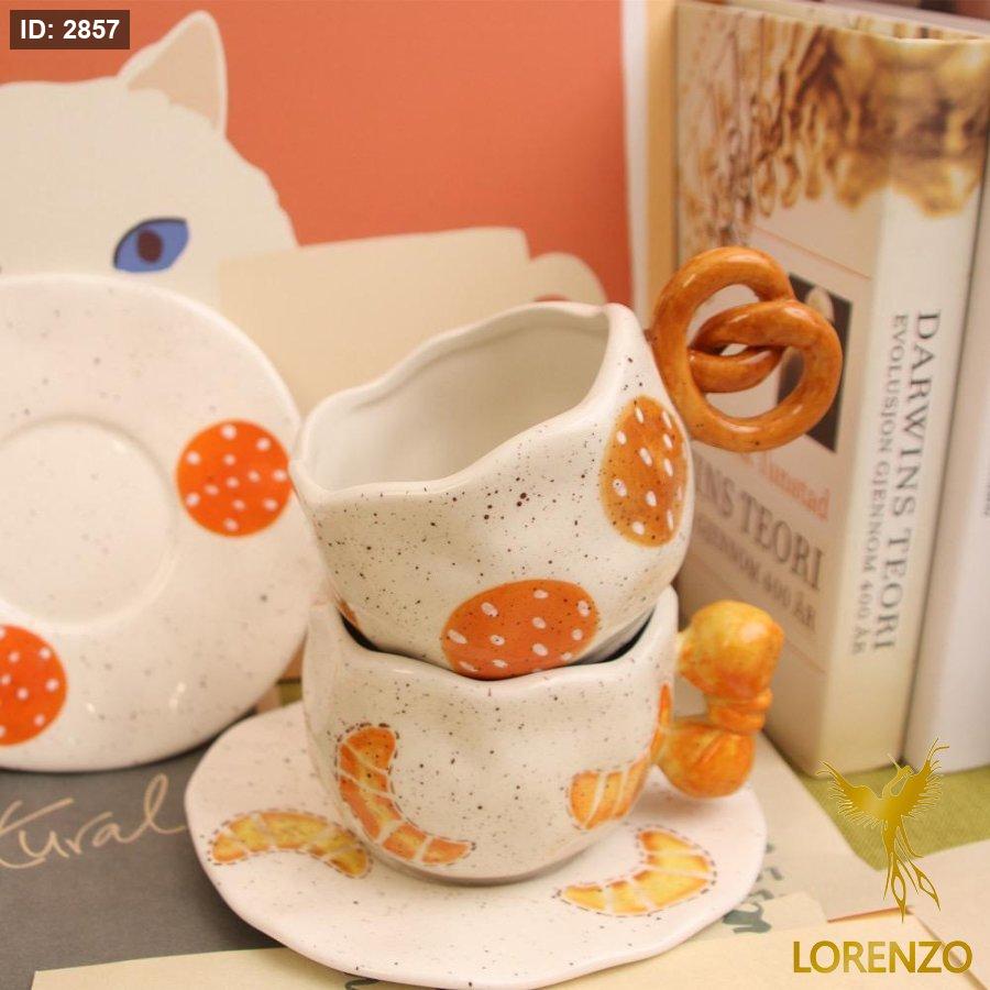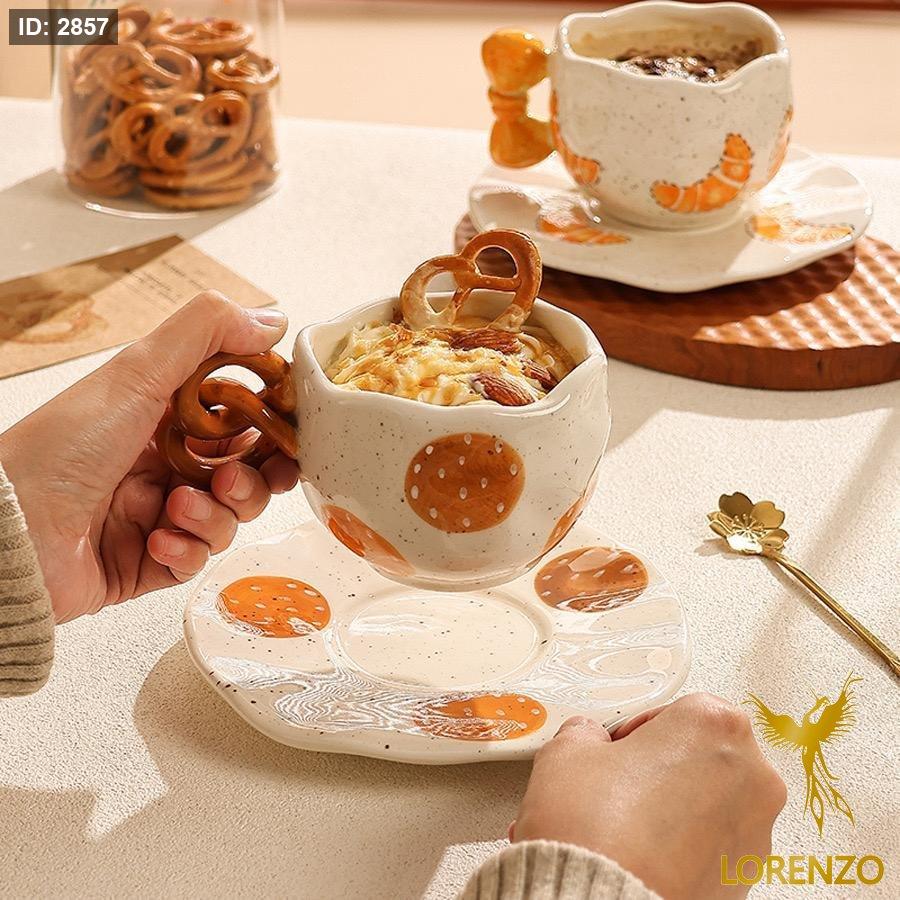 مج البيجلا والكروسان سيراميك + صحن