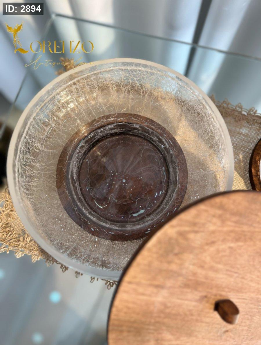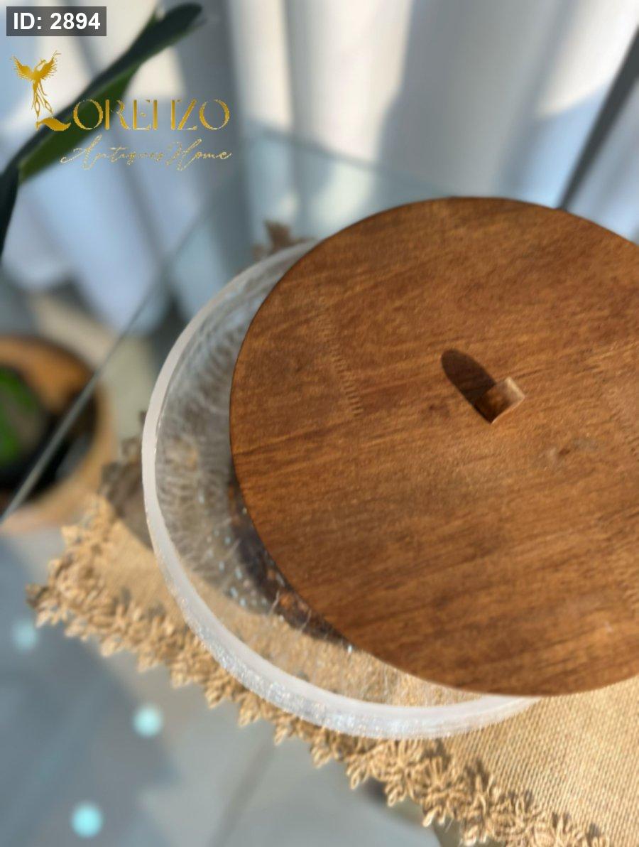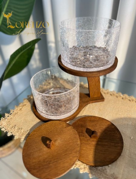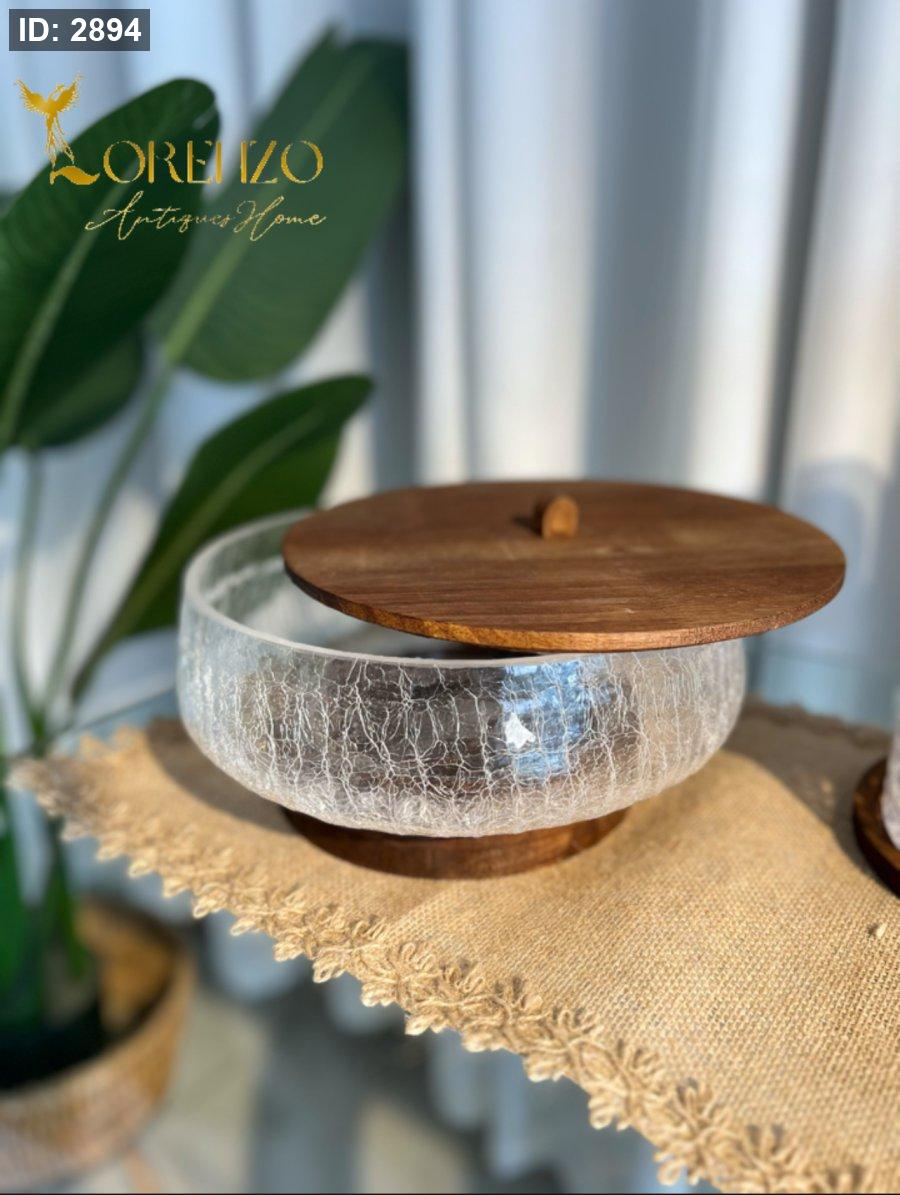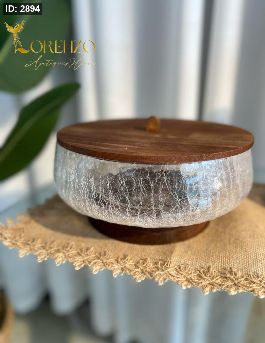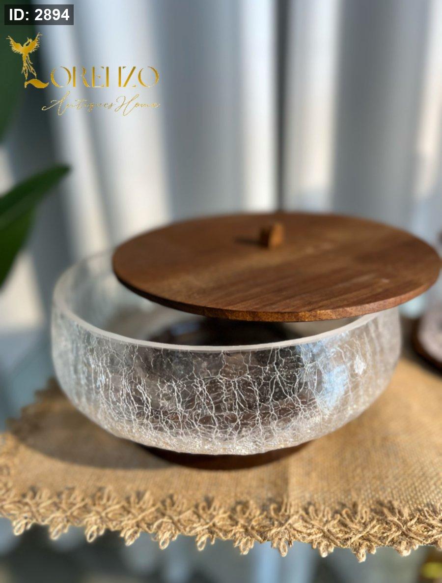 مضيفة / جاط زجاج مُتلئلئ + خشب (قاعدة + غطاء)