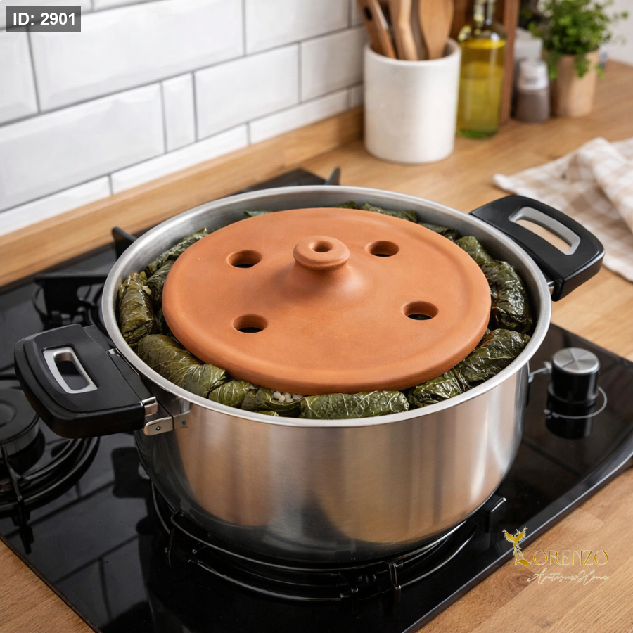 ثقالة الفخار التقليدية هي الأداة المثالية لتحضير الدوالي والمحاشي بطريقة صحيحة، حيث تساعد على تثبيت ورق العنب ومنع تفككه أثناء الطهي، مع توزيع متوازن للحرارة يمنحك نتيجة شهية وطعم أصيل مثل الطبخ البلدي.