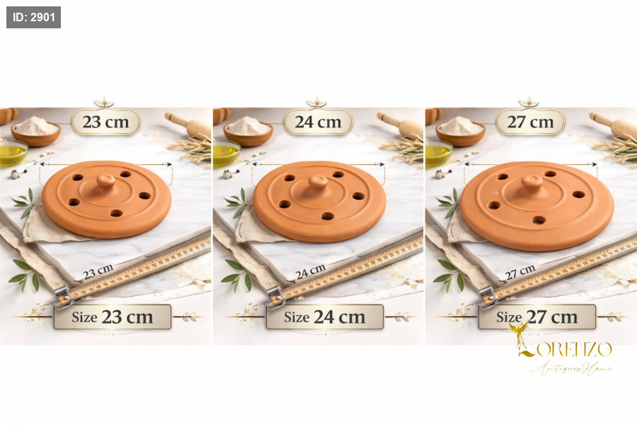 مصنوعة من فخار طبيعي عالي الجودة يتحمل الحرارة العالية، وتتميز بفتحات مدروسة تسمح بخروج البخار بشكل متوازن لضمان نضج مثالي دون زيادة السوائل.