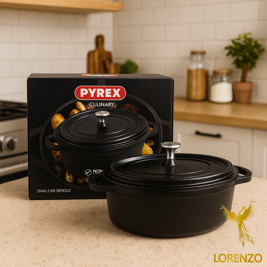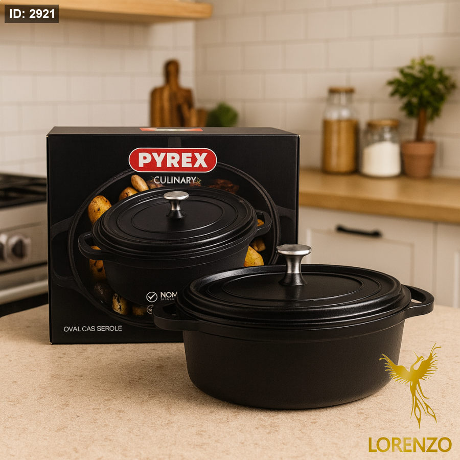 اختيار مثالي للطهي اليومي والفرن مع طنجرة بايركس البيضاوية مقاس 30 سم باللون الأسود الأنيق. تصميم عملي بالشكل البيضاوي يناسب تحضير الأطباق العائلية الكبيرة مثل الدجاج الكامل، اللحوم، اليخنات، والأرز.