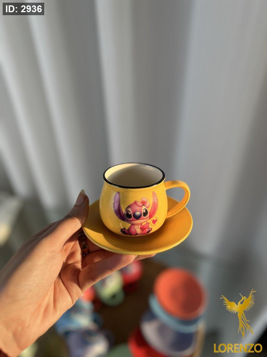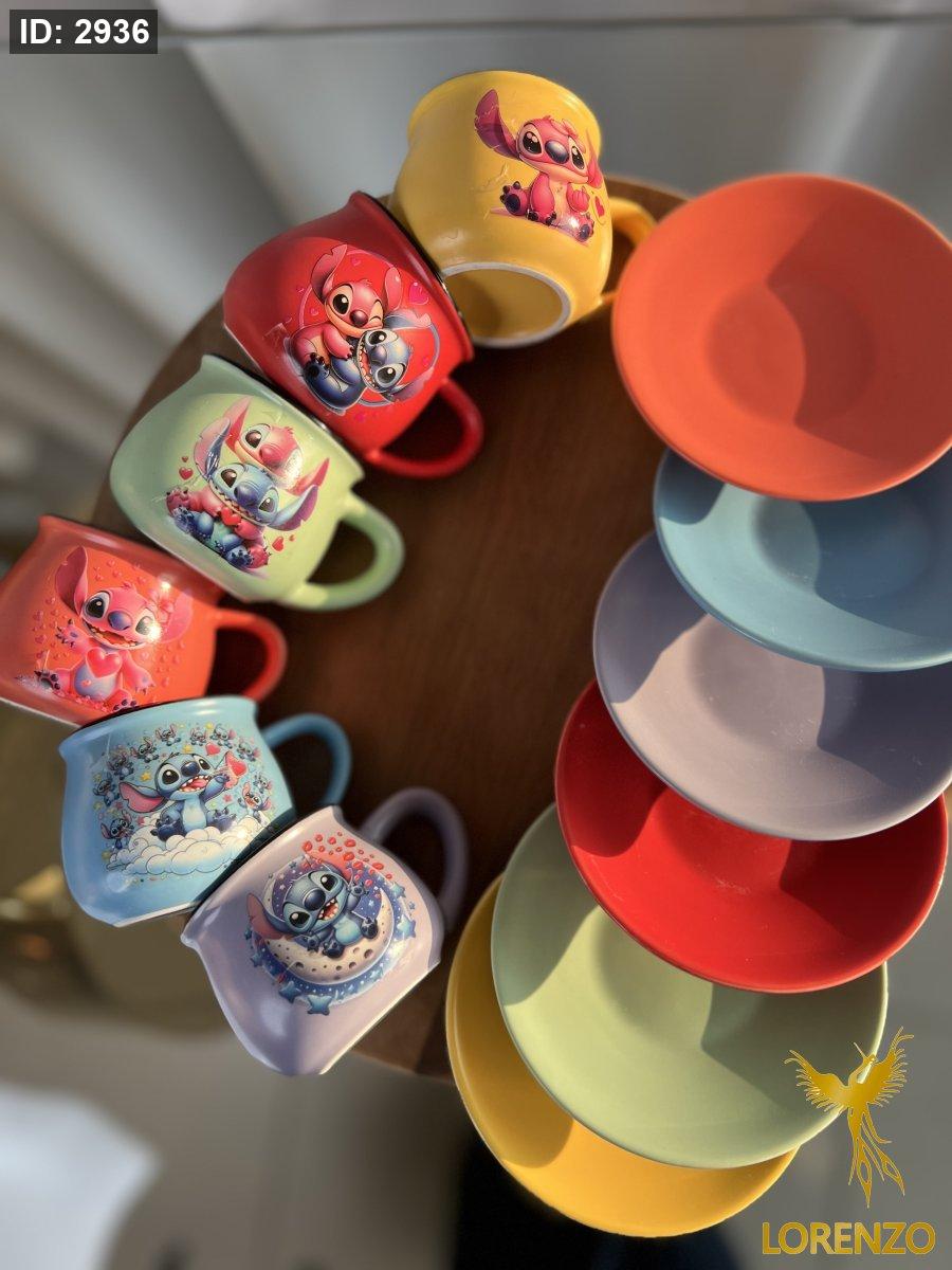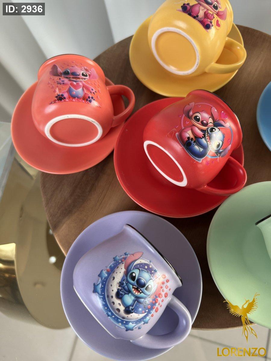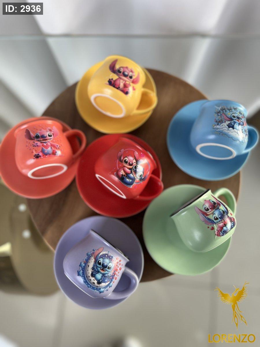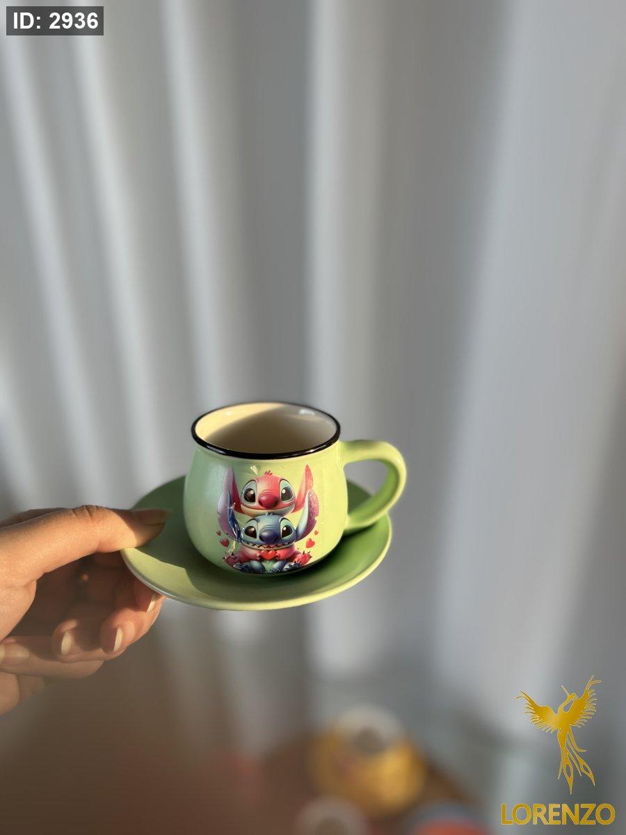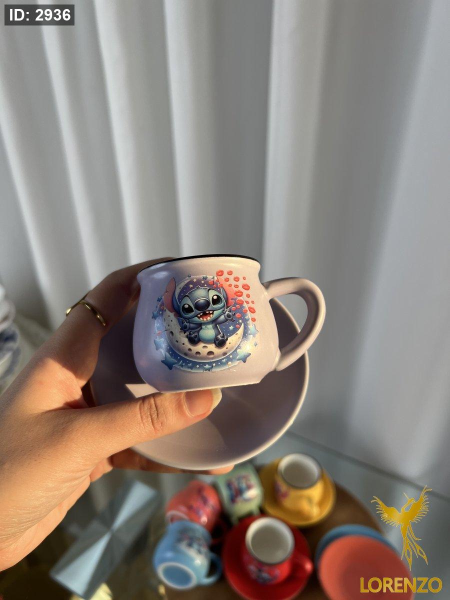 طقم فناجين قهوة الخزفية الصغيرة بشخصية "ستيتش" (Stitch) من ديزني.