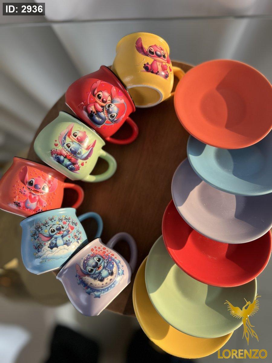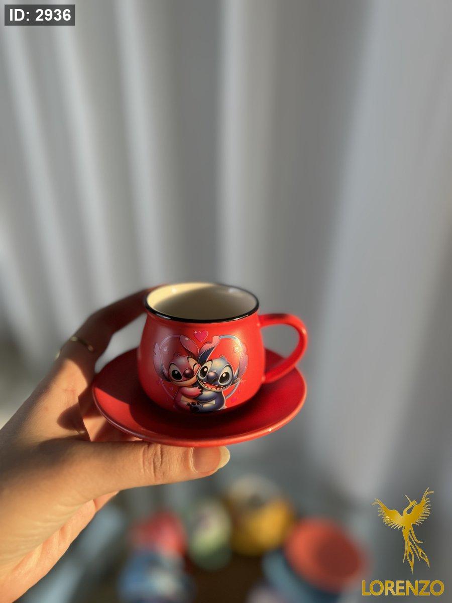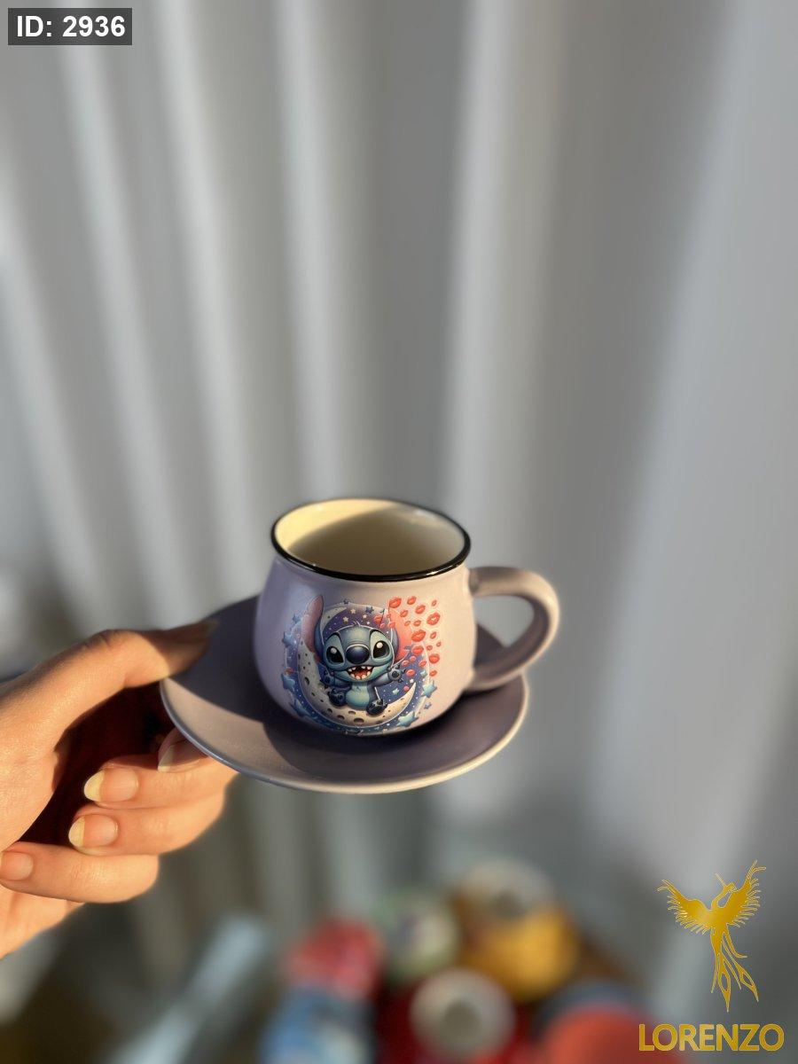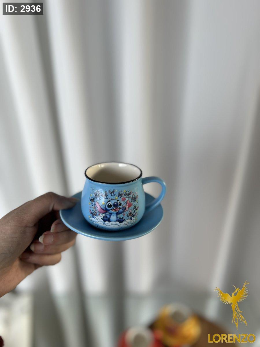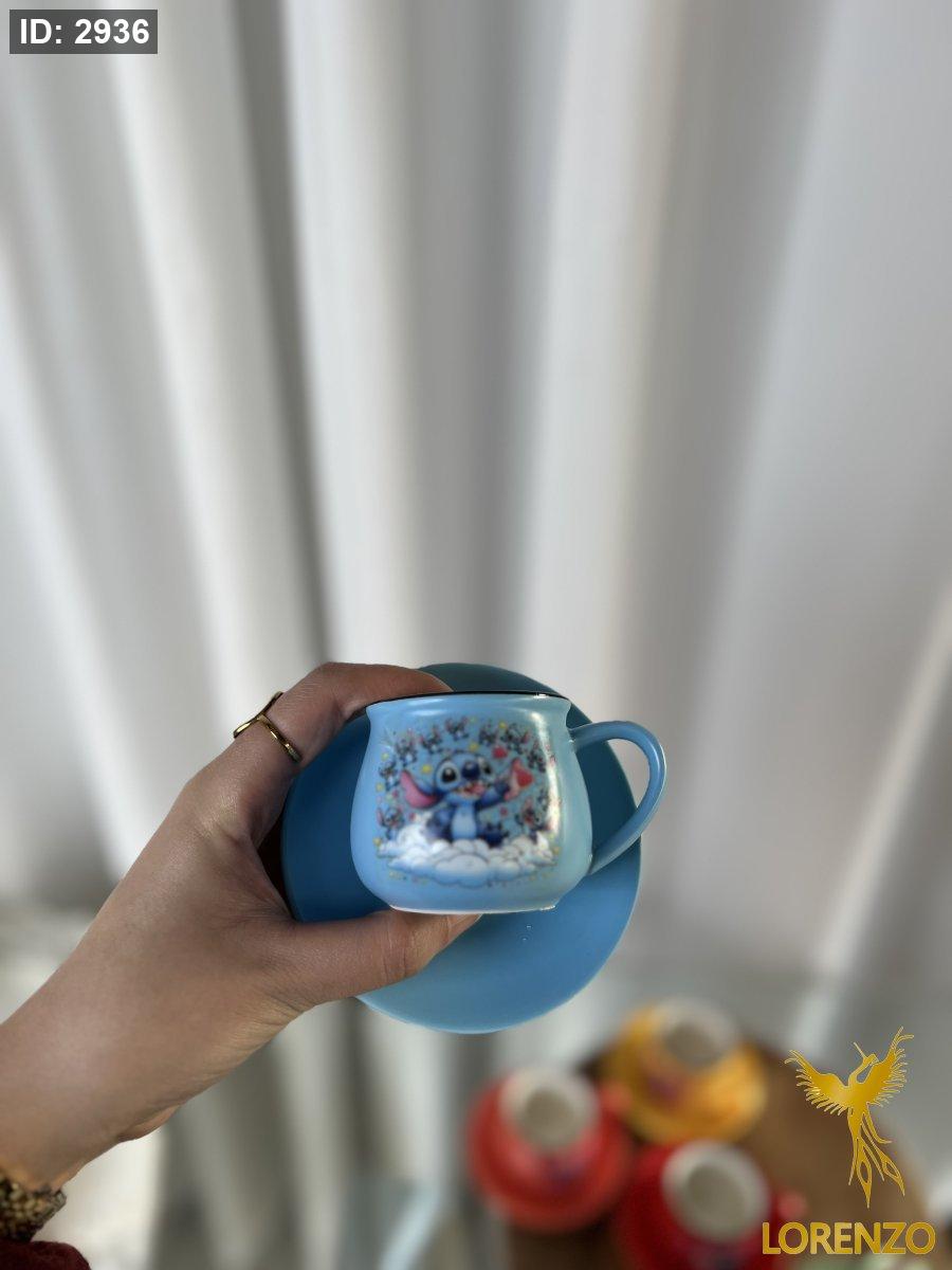 طقم فناجين قهوة الخزفية الصغيرة بشخصية "ستيتش" (Stitch) من ديزني.