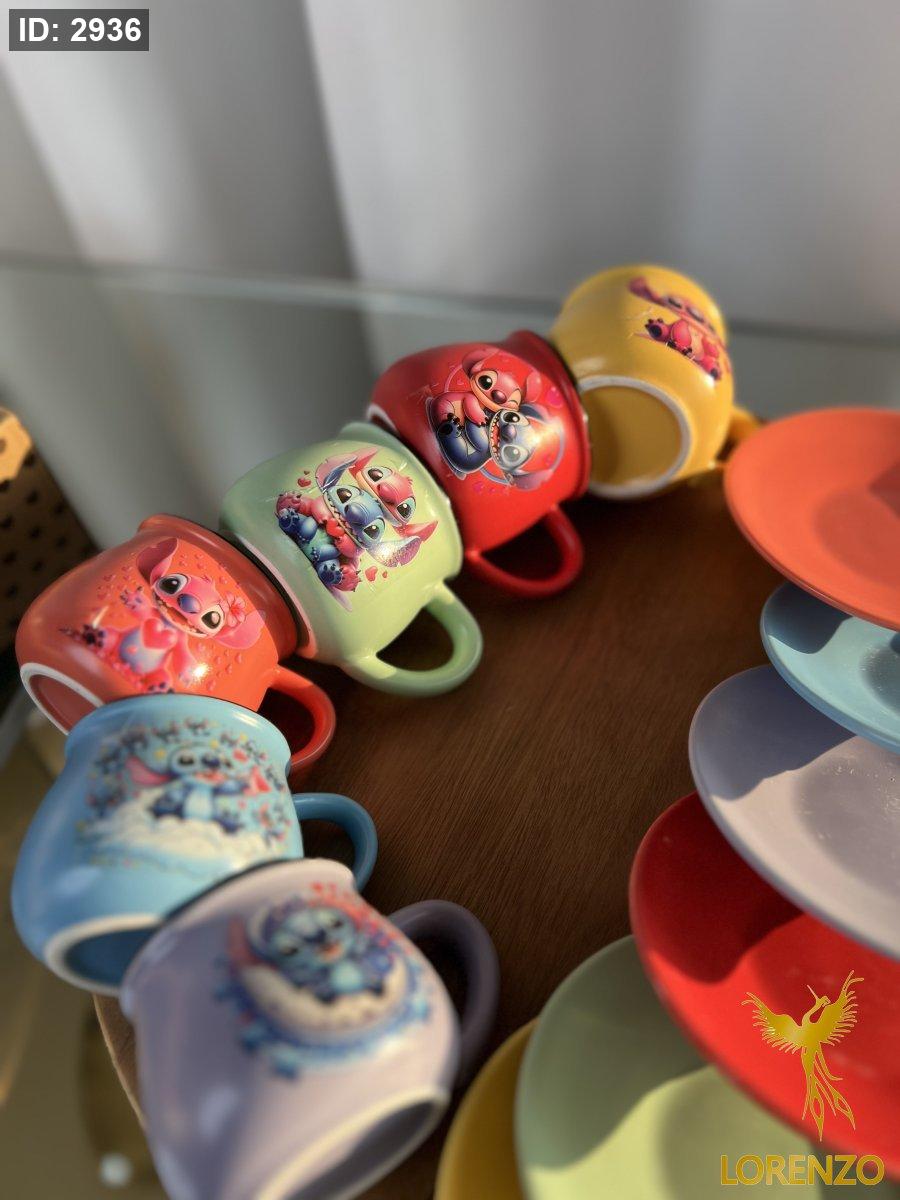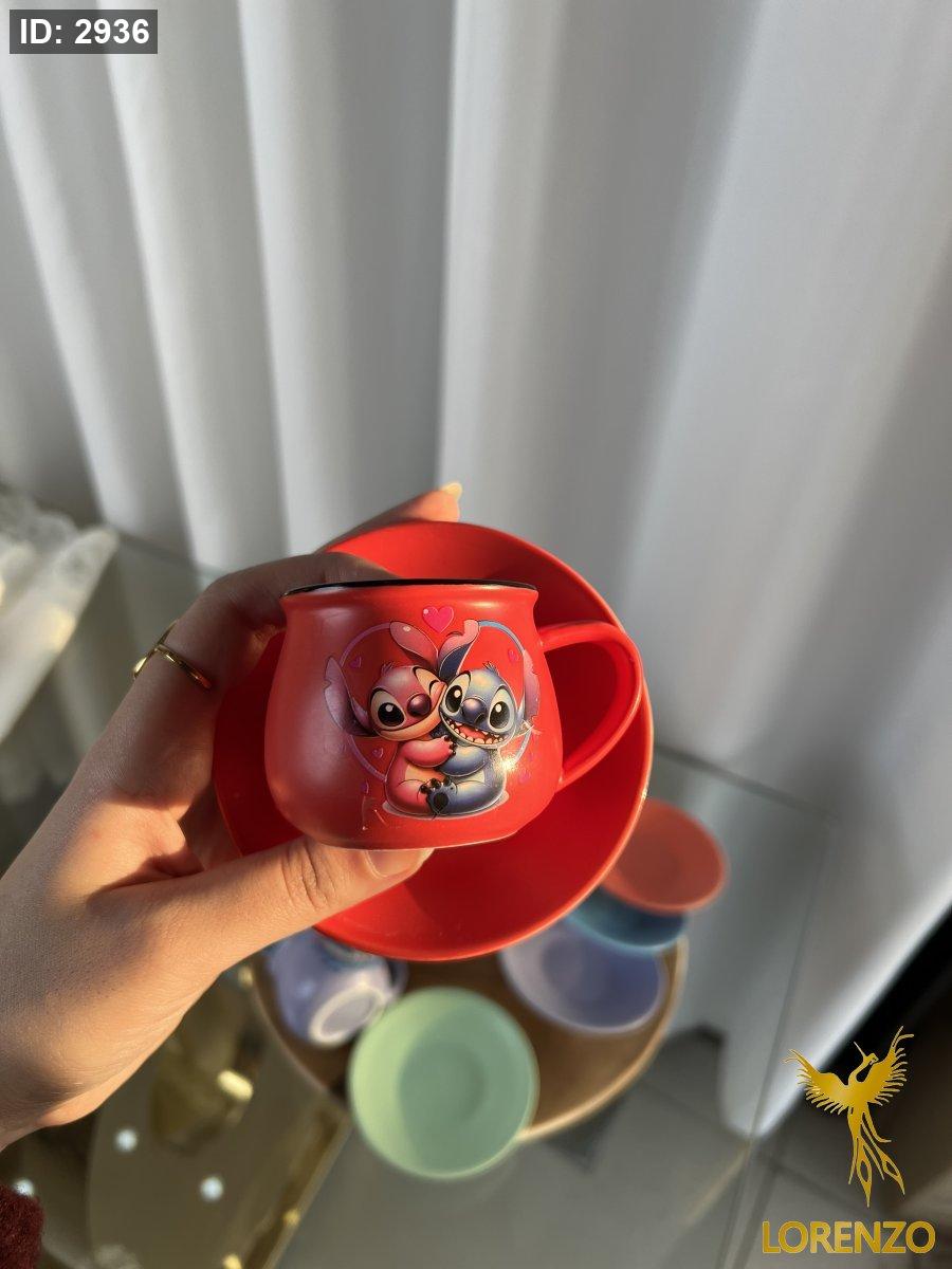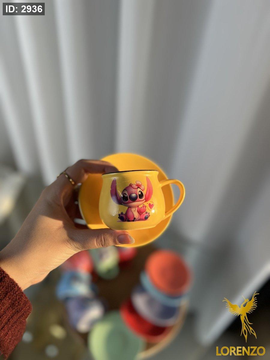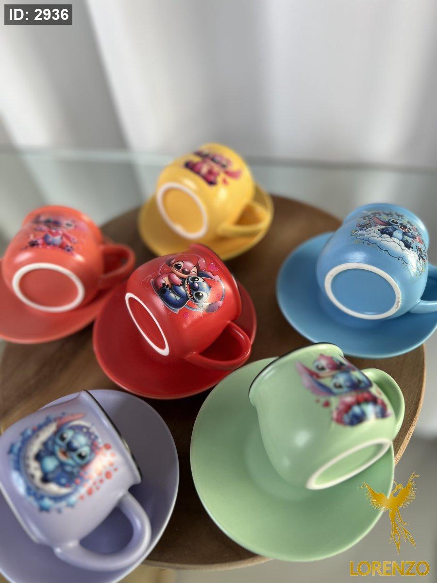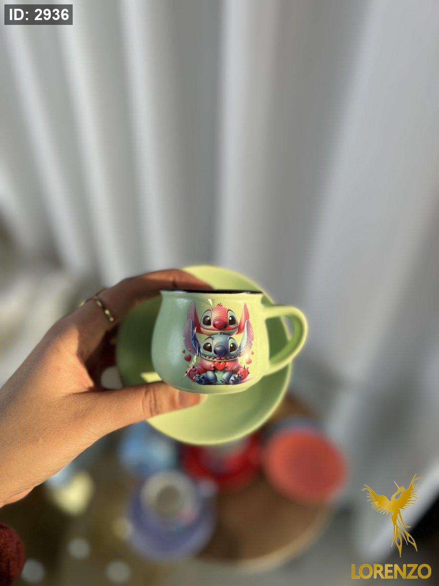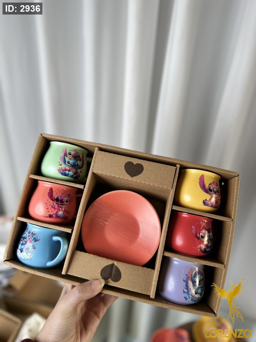 طقم فناجين قهوة الخزفية الصغيرة بشخصية "ستيتش" (Stitch) من ديزني.