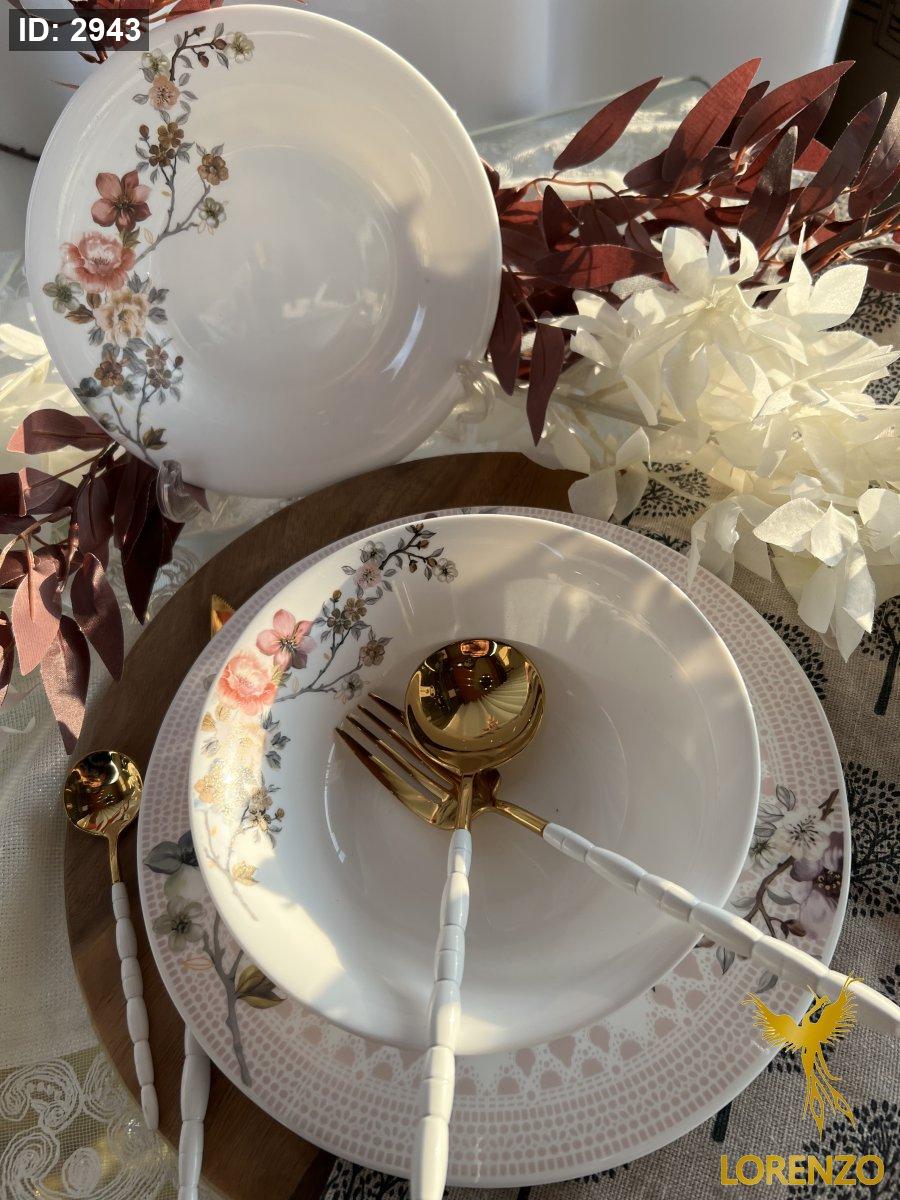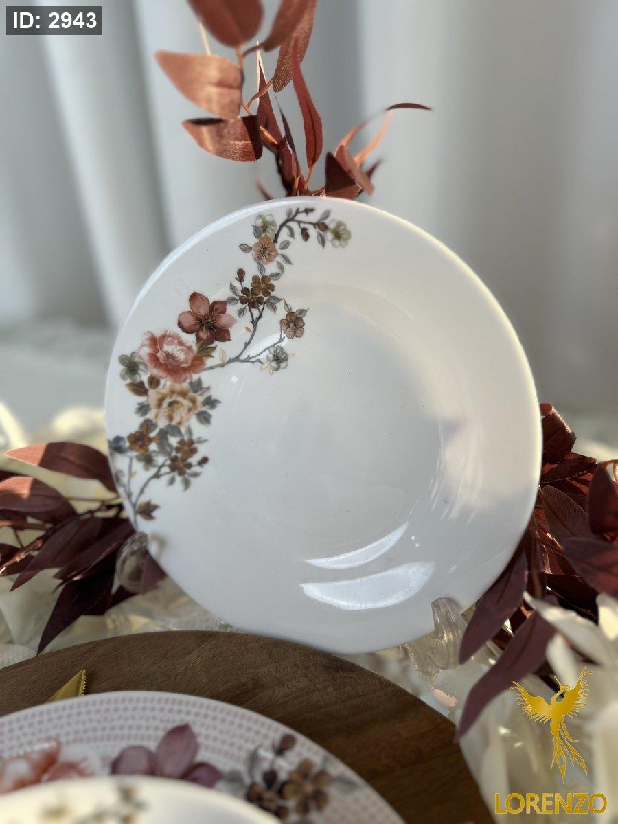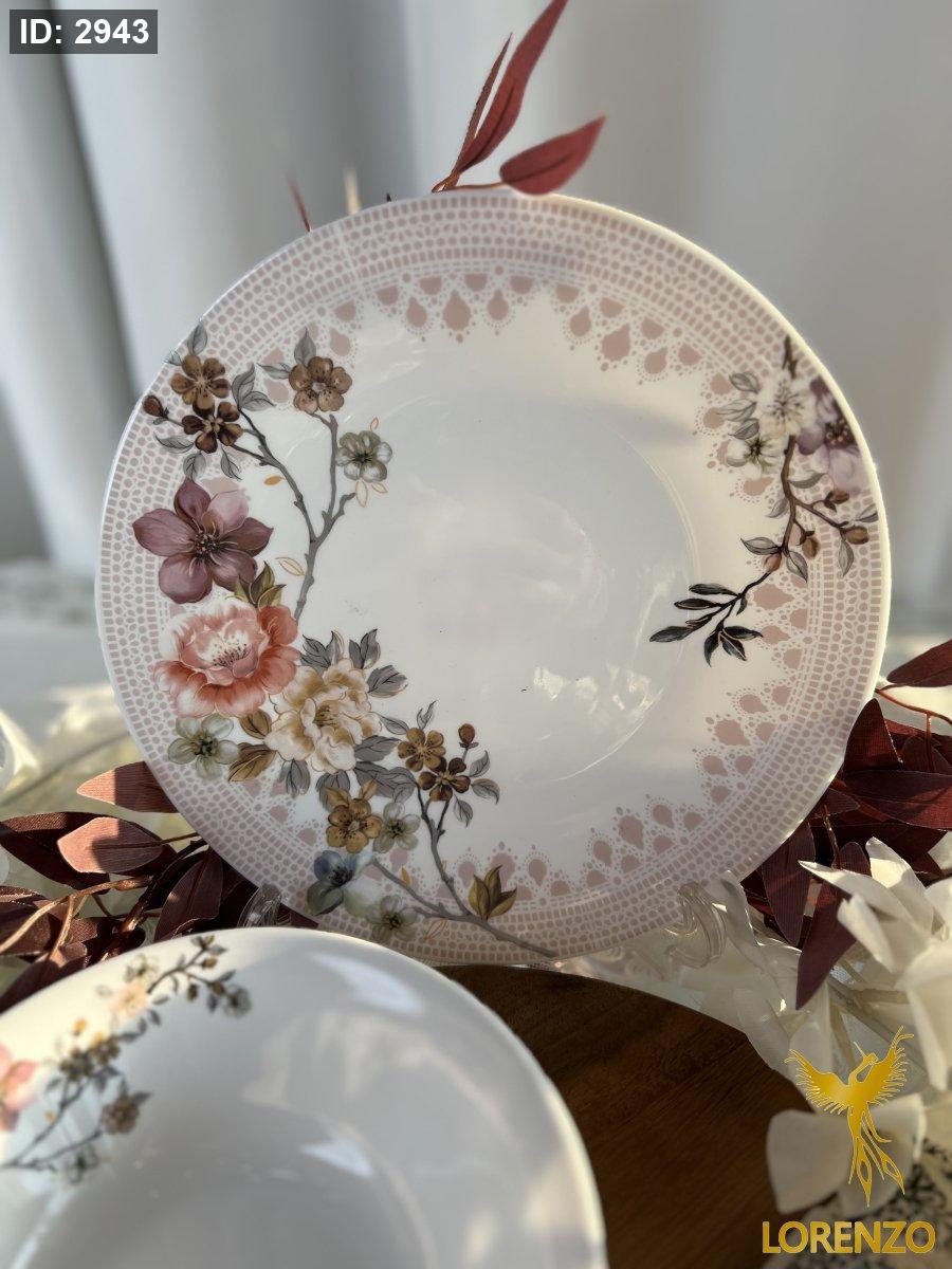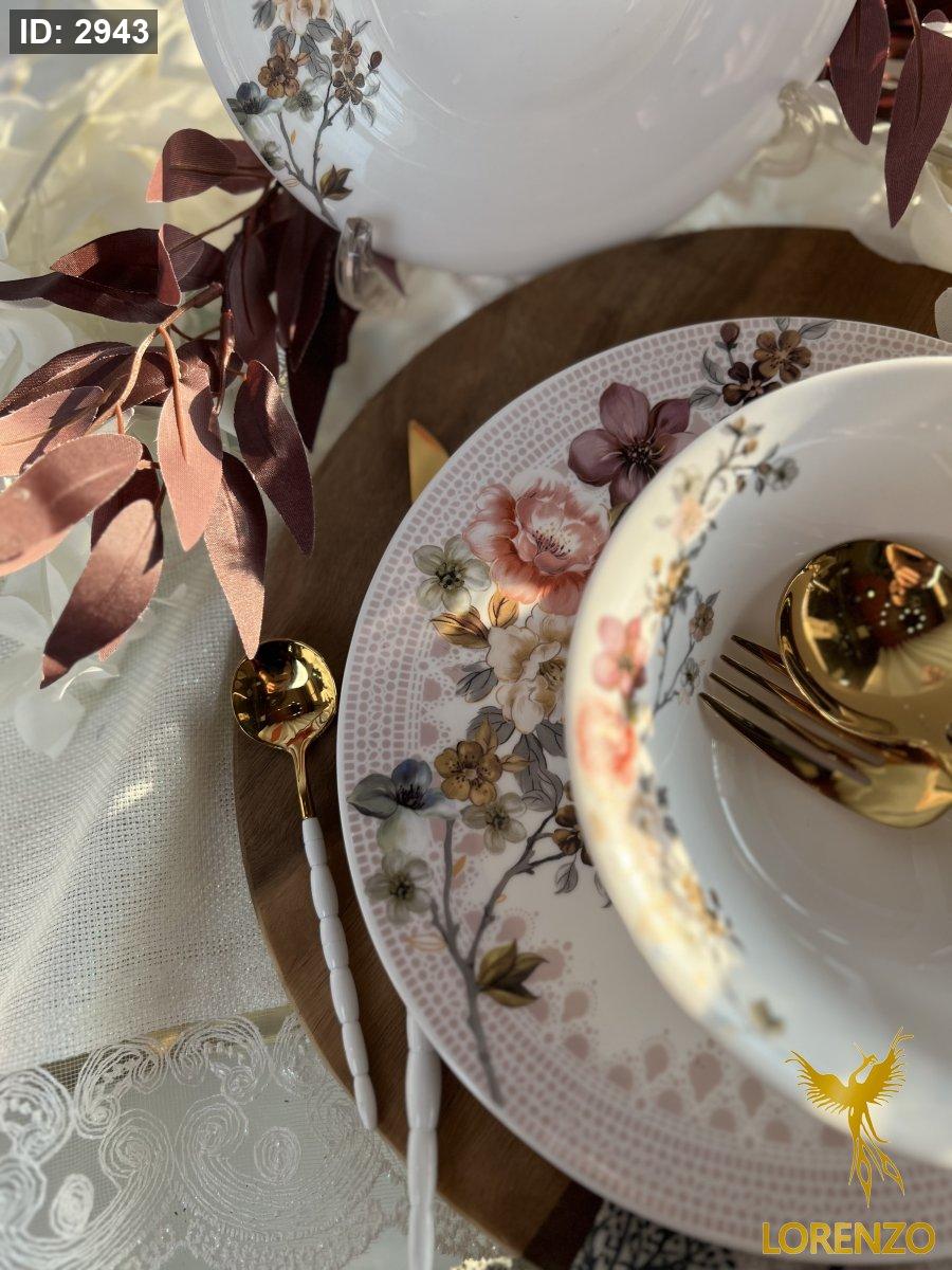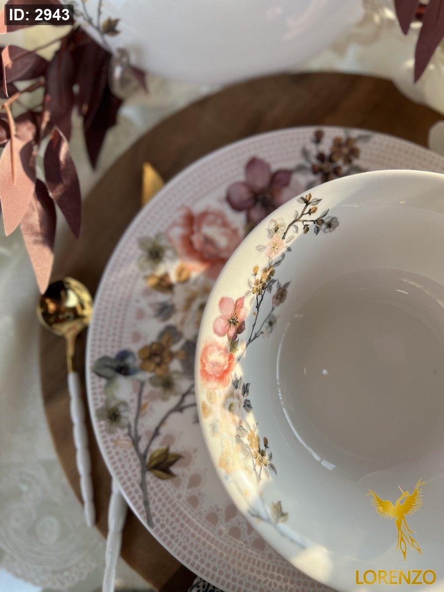 طقم صحون سفرة نقش ايطالي ( ورد زهري )