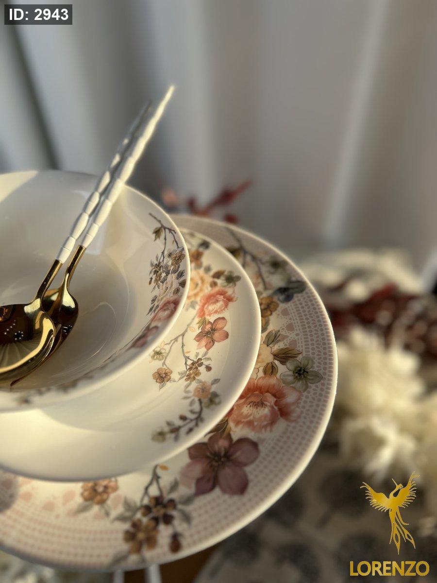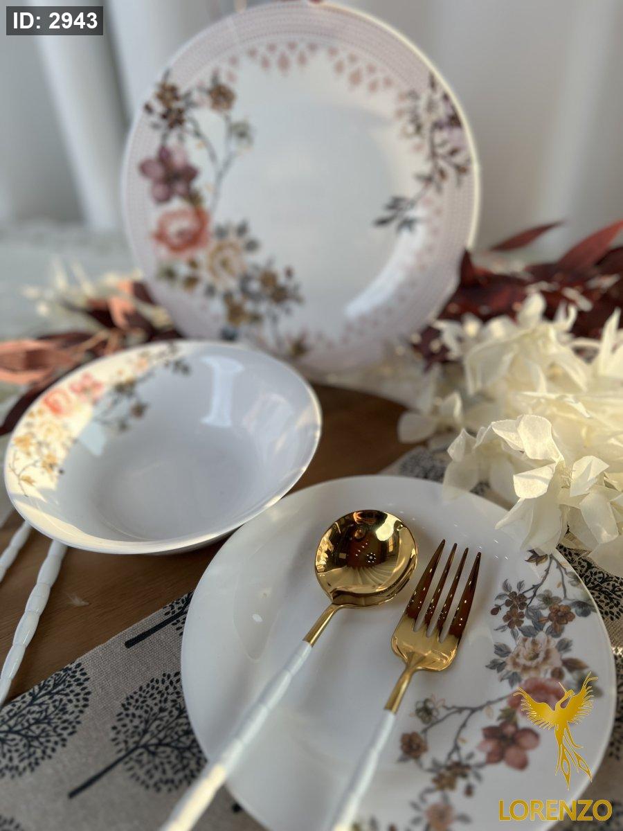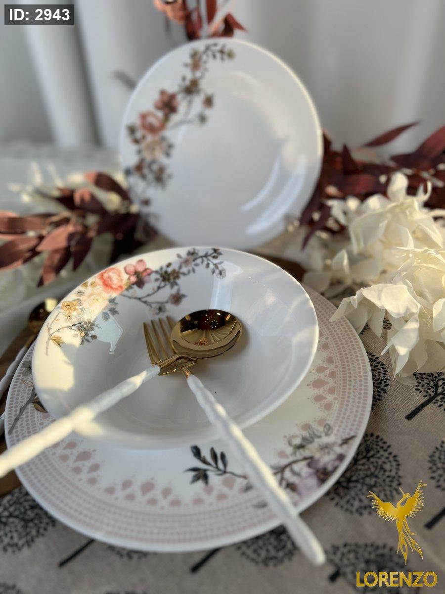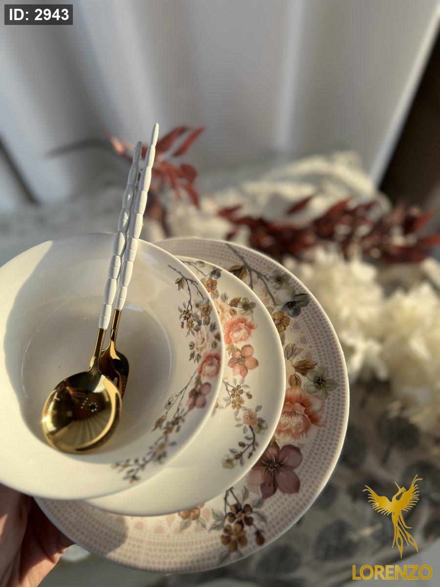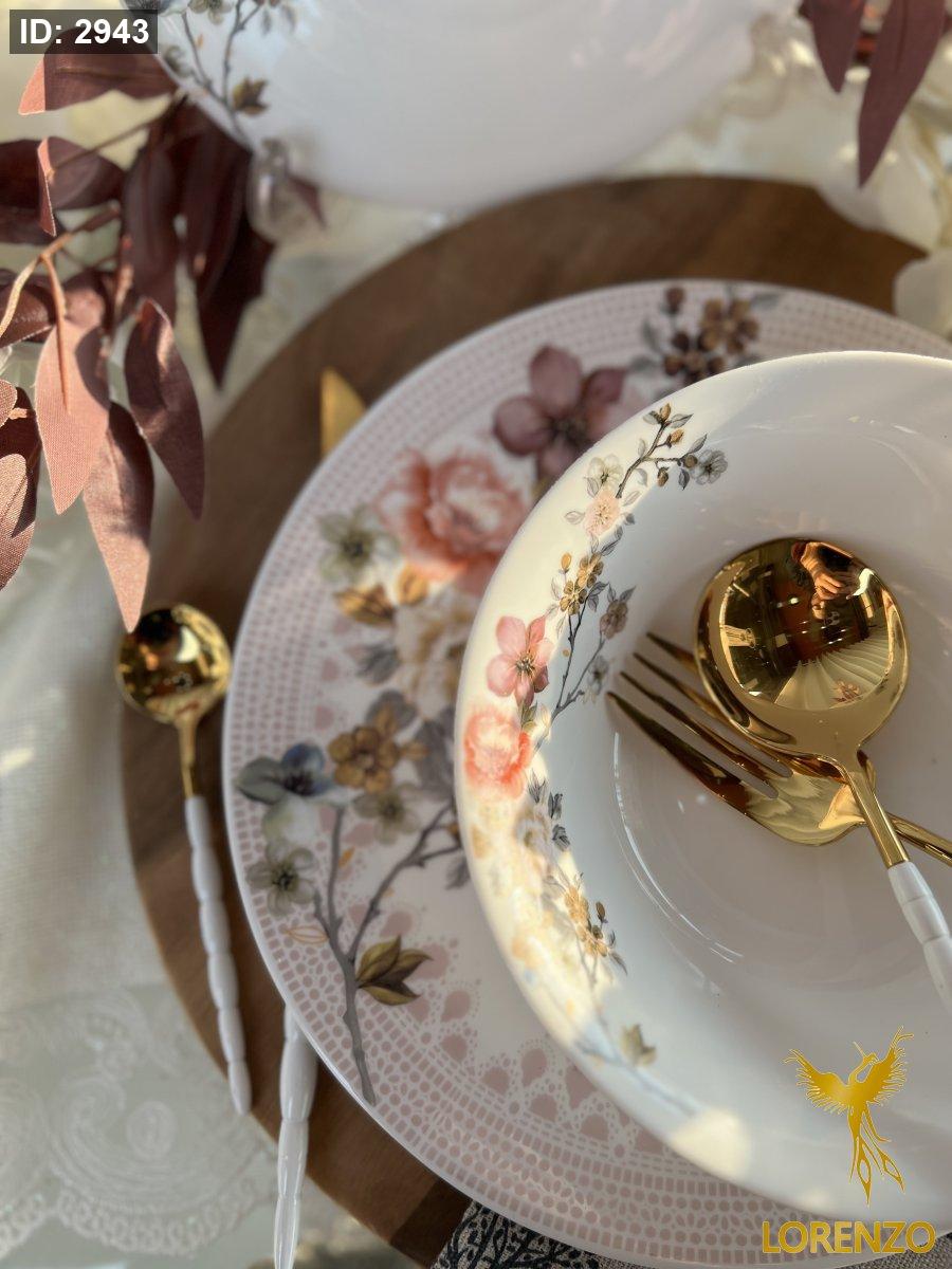 طقم صحون سفرة نقش ايطالي ( ورد زهري )