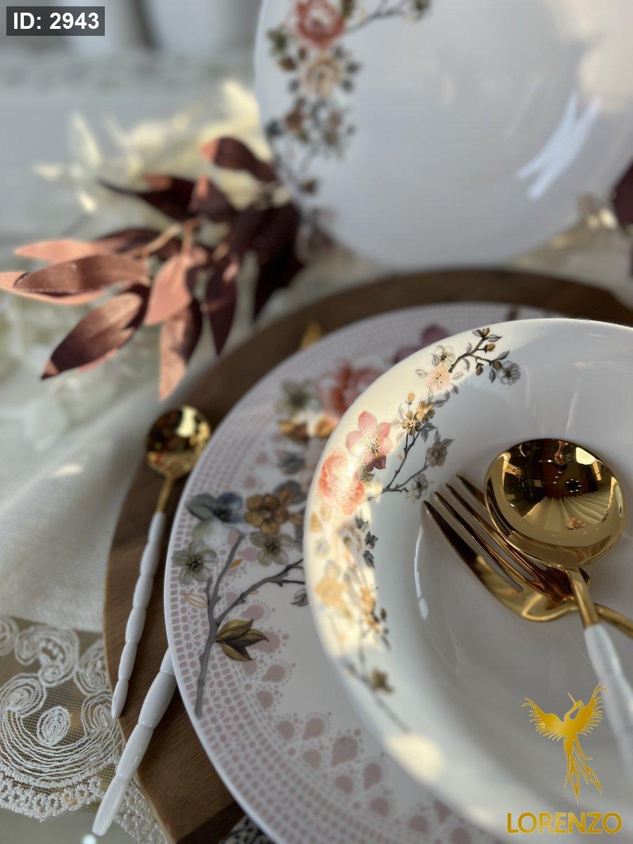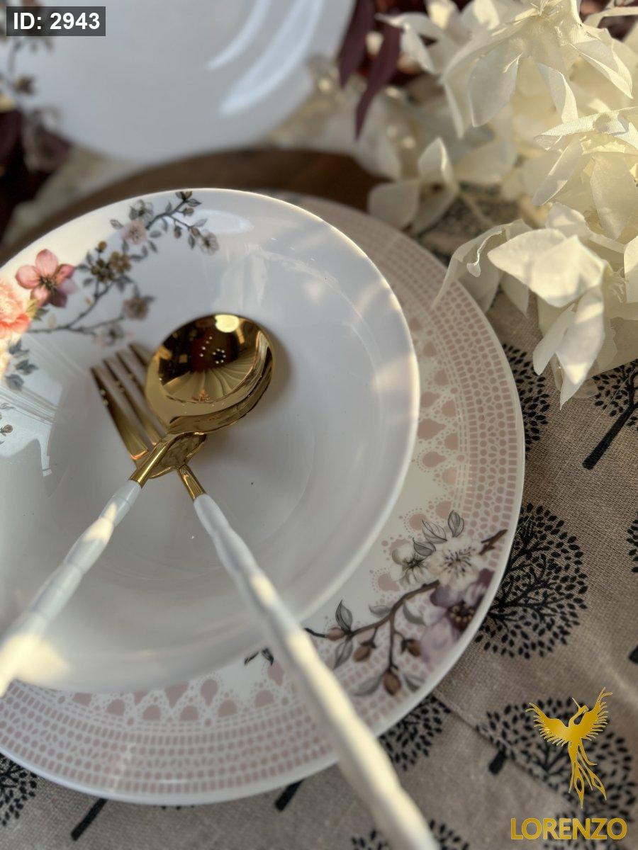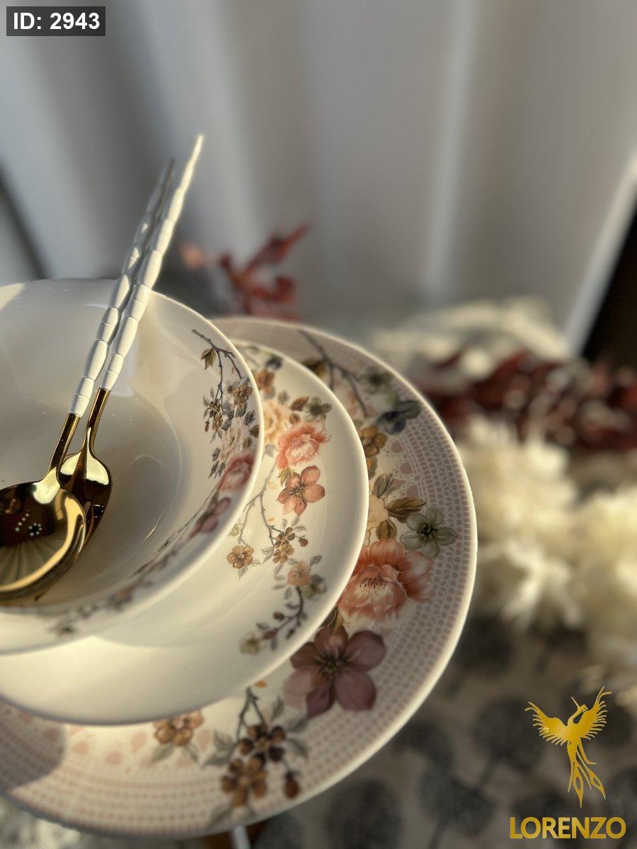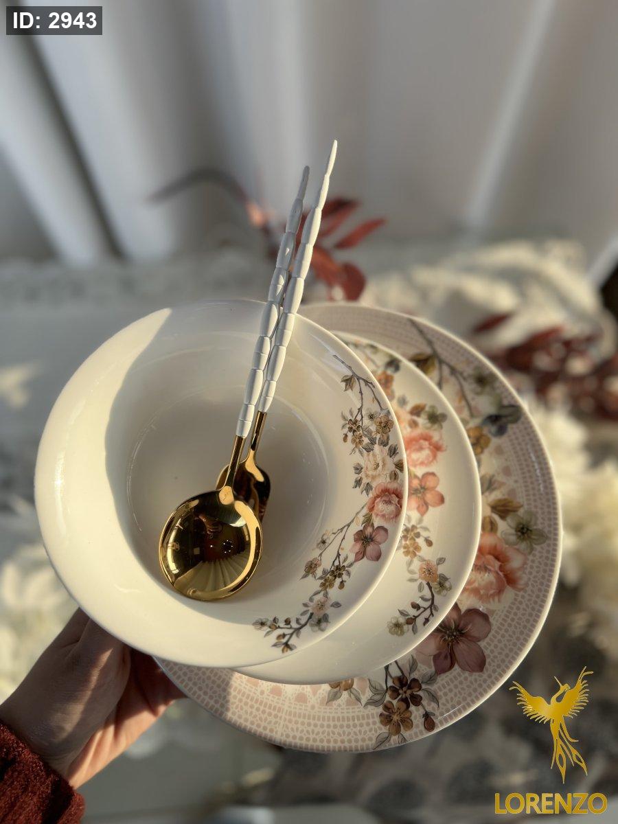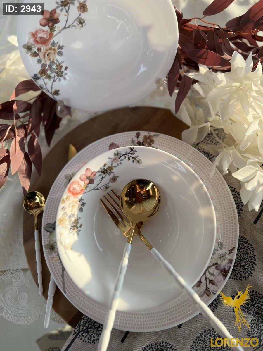 طقم صحون سفرة نقش ايطالي ( ورد زهري )