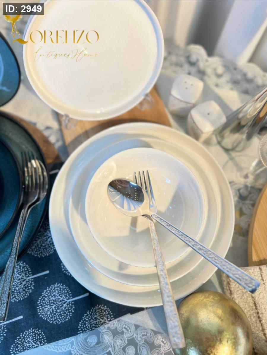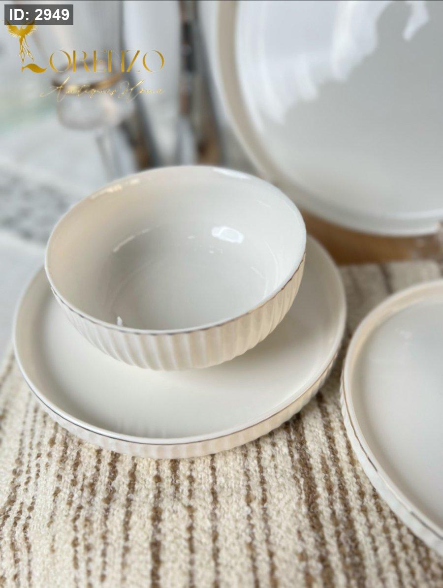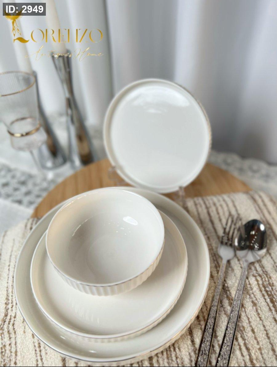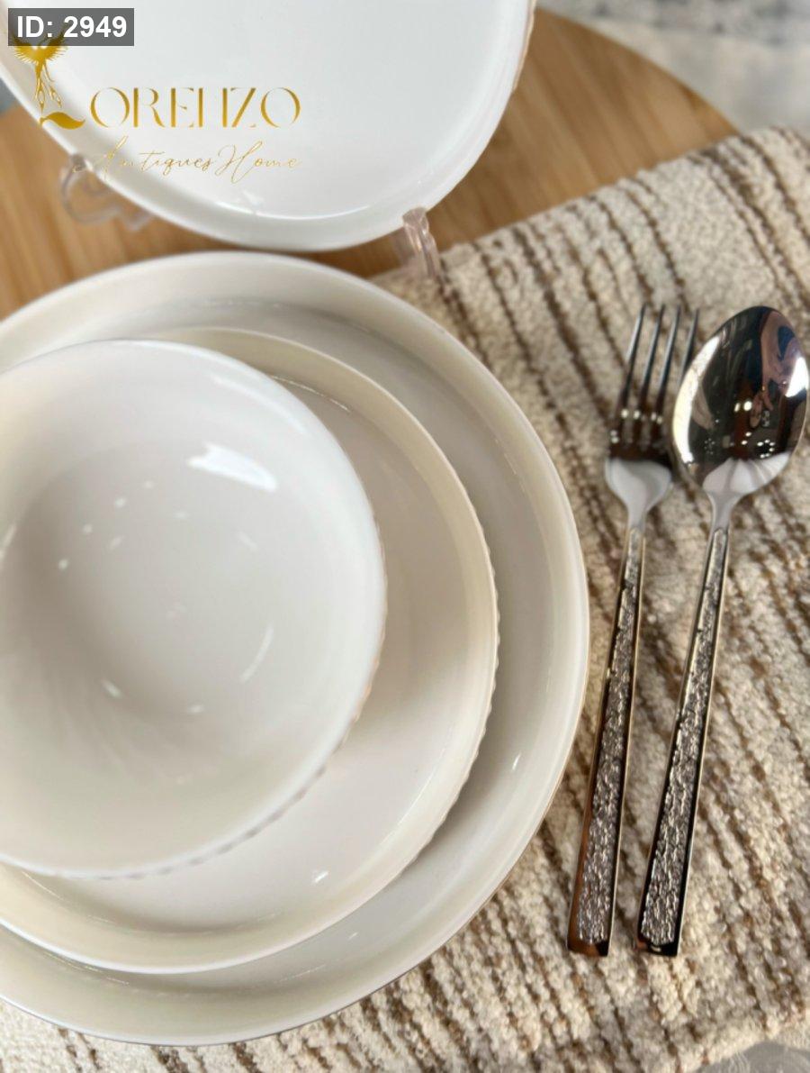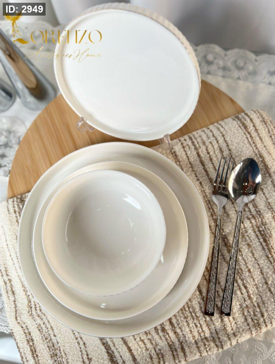 صحون سفرة لون ابيض ملوكي محزز | 24 قطعة