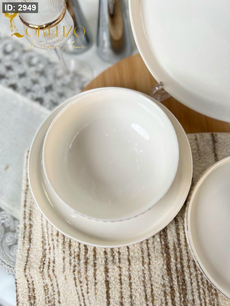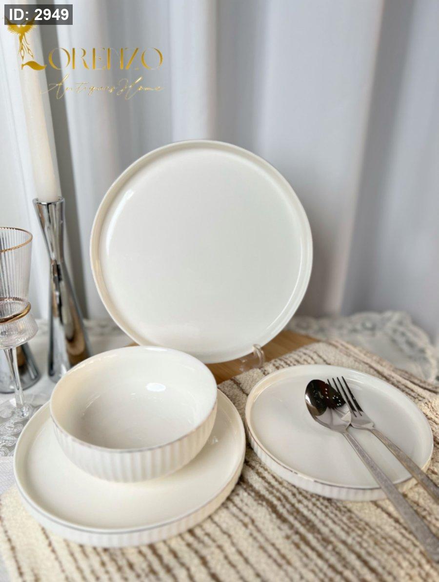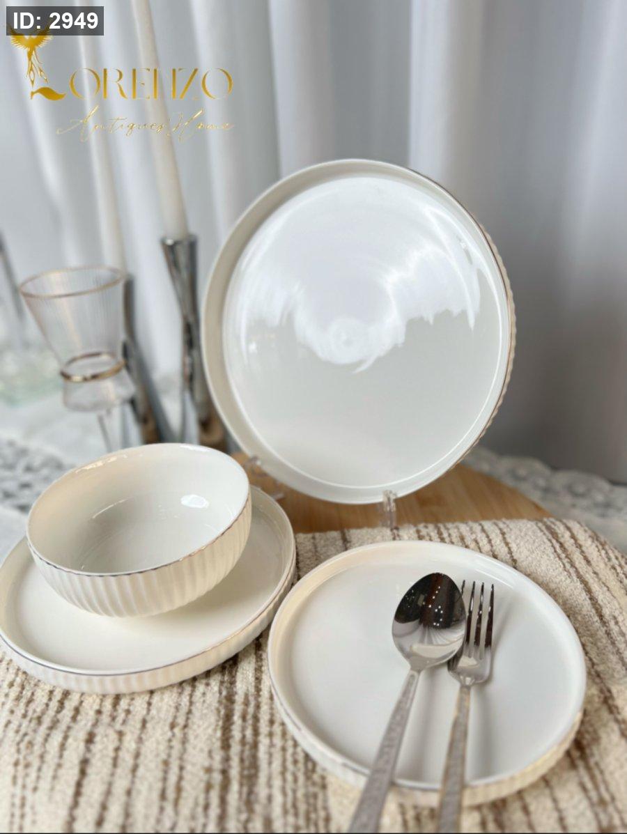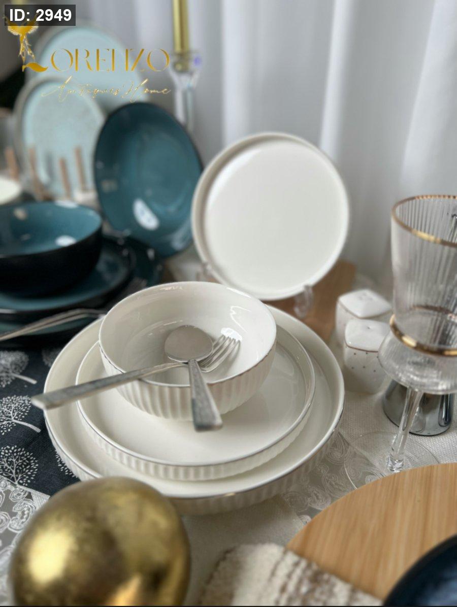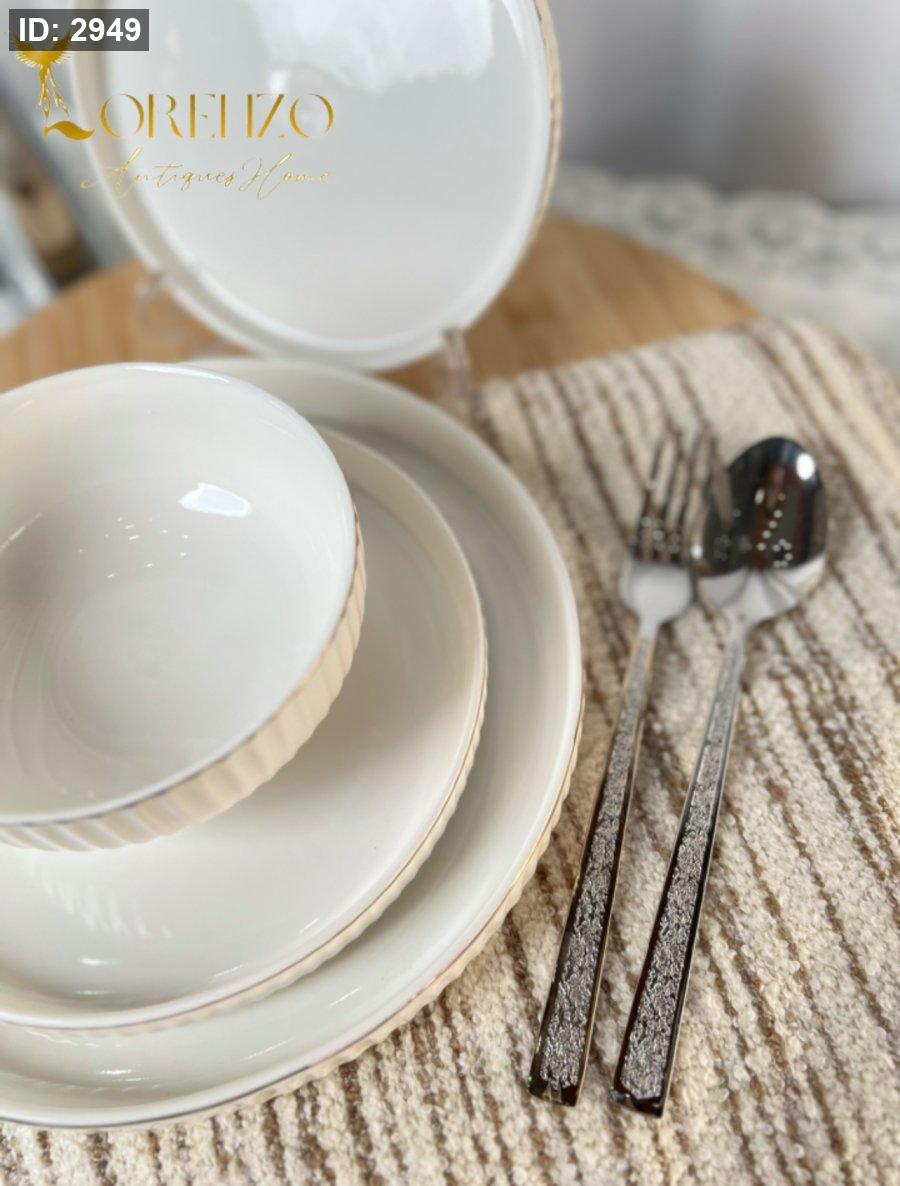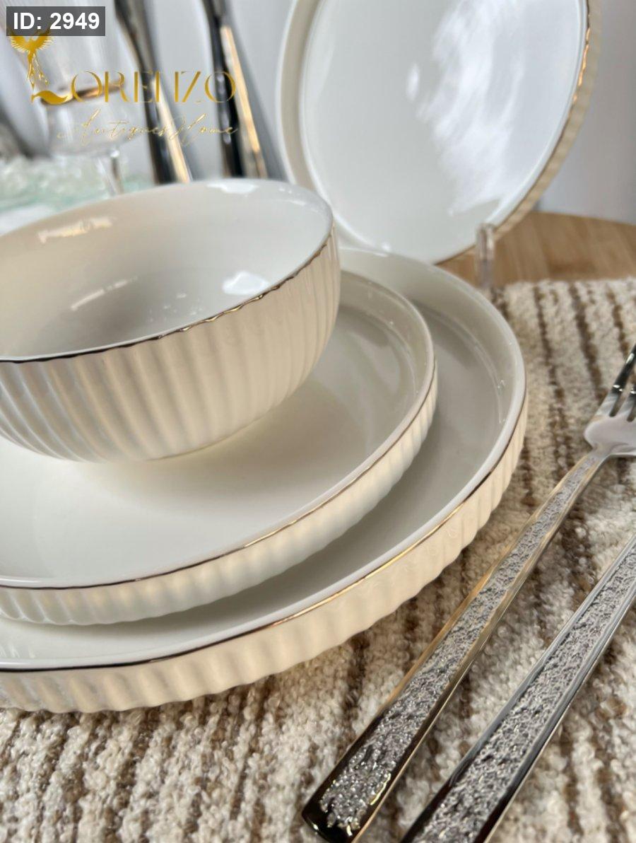 صحون سفرة لون ابيض ملوكي محزز | 24 قطعة