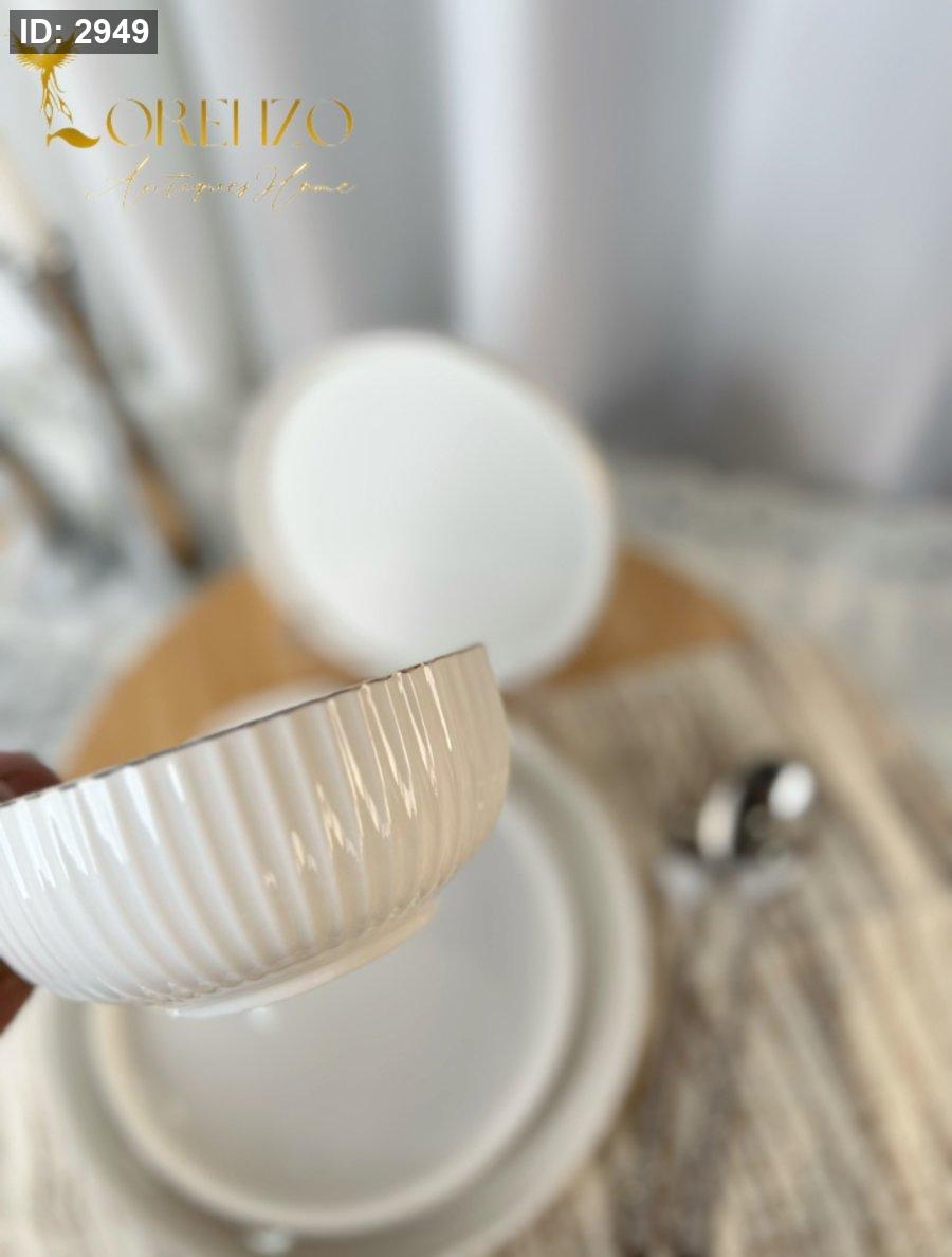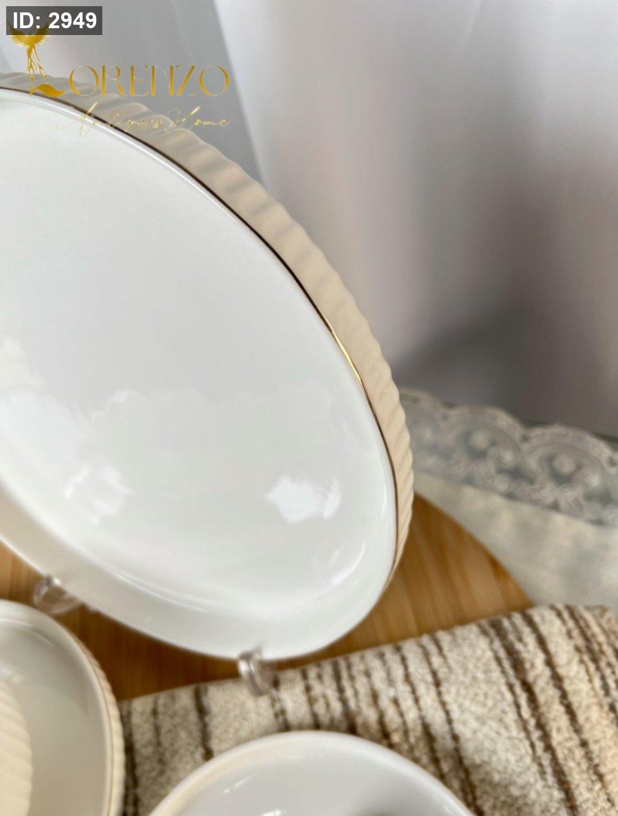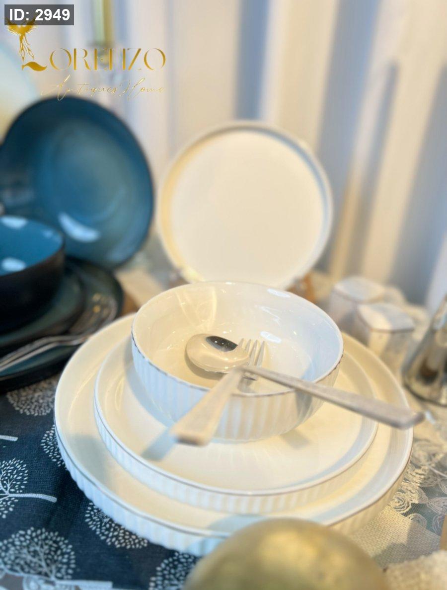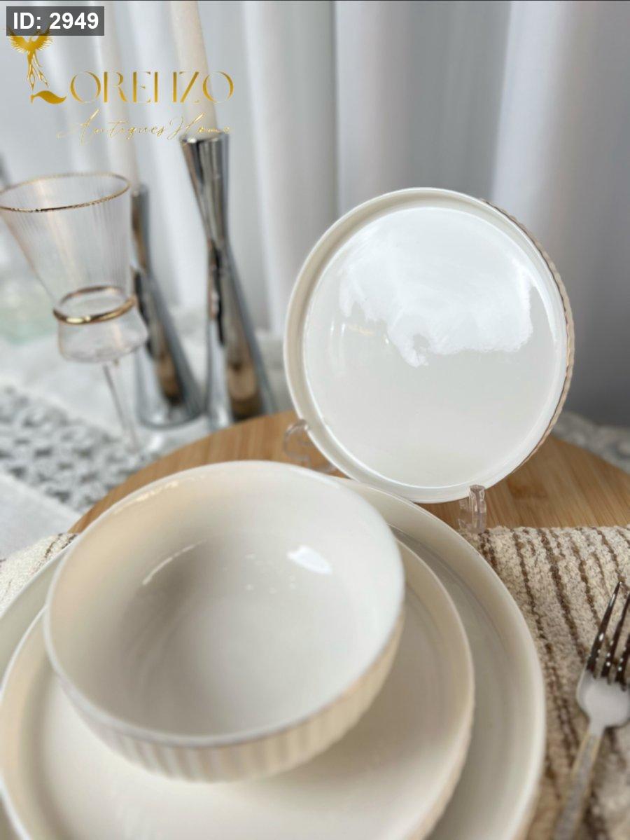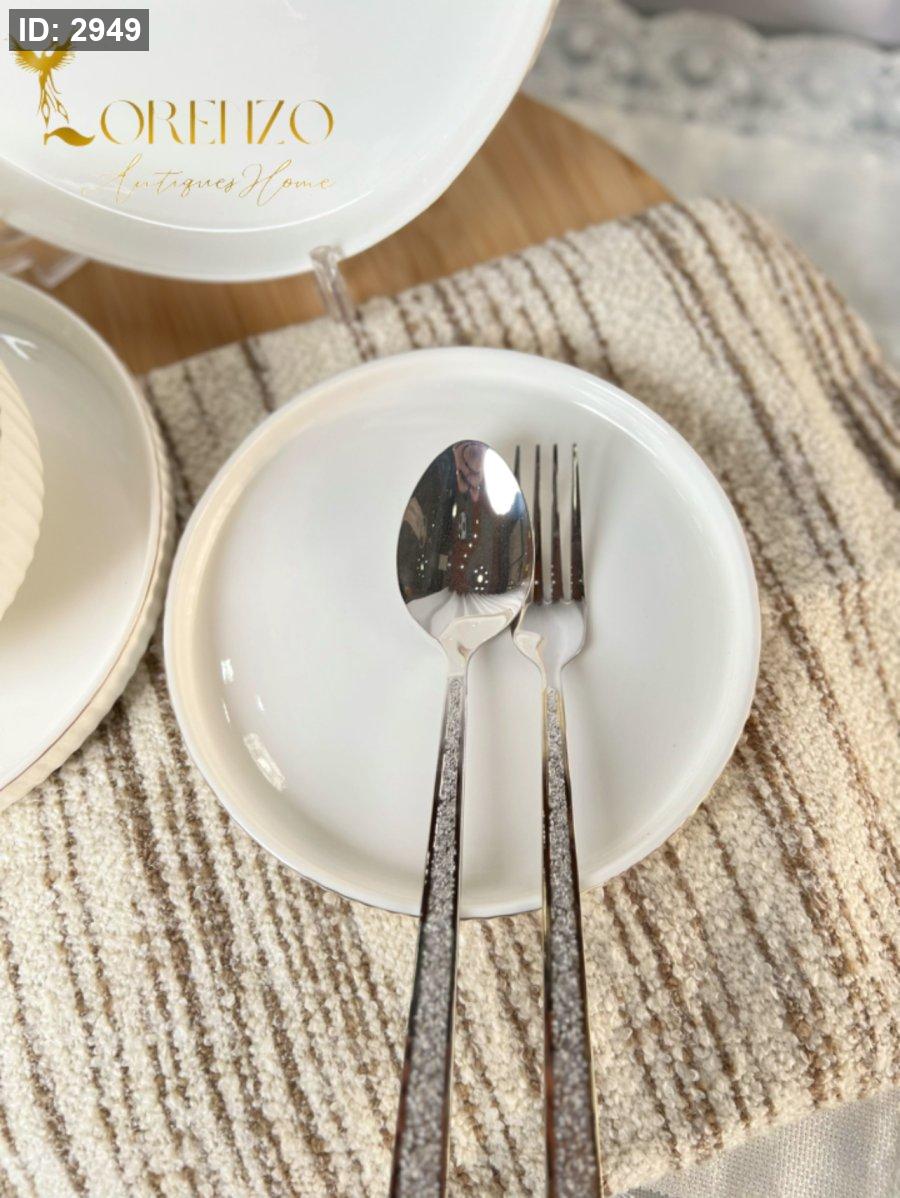 صحون سفرة لون ابيض ملوكي محزز | 24 قطعة