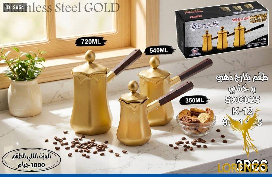 طقم بكارج قهوه 3 احجام يد خشبي