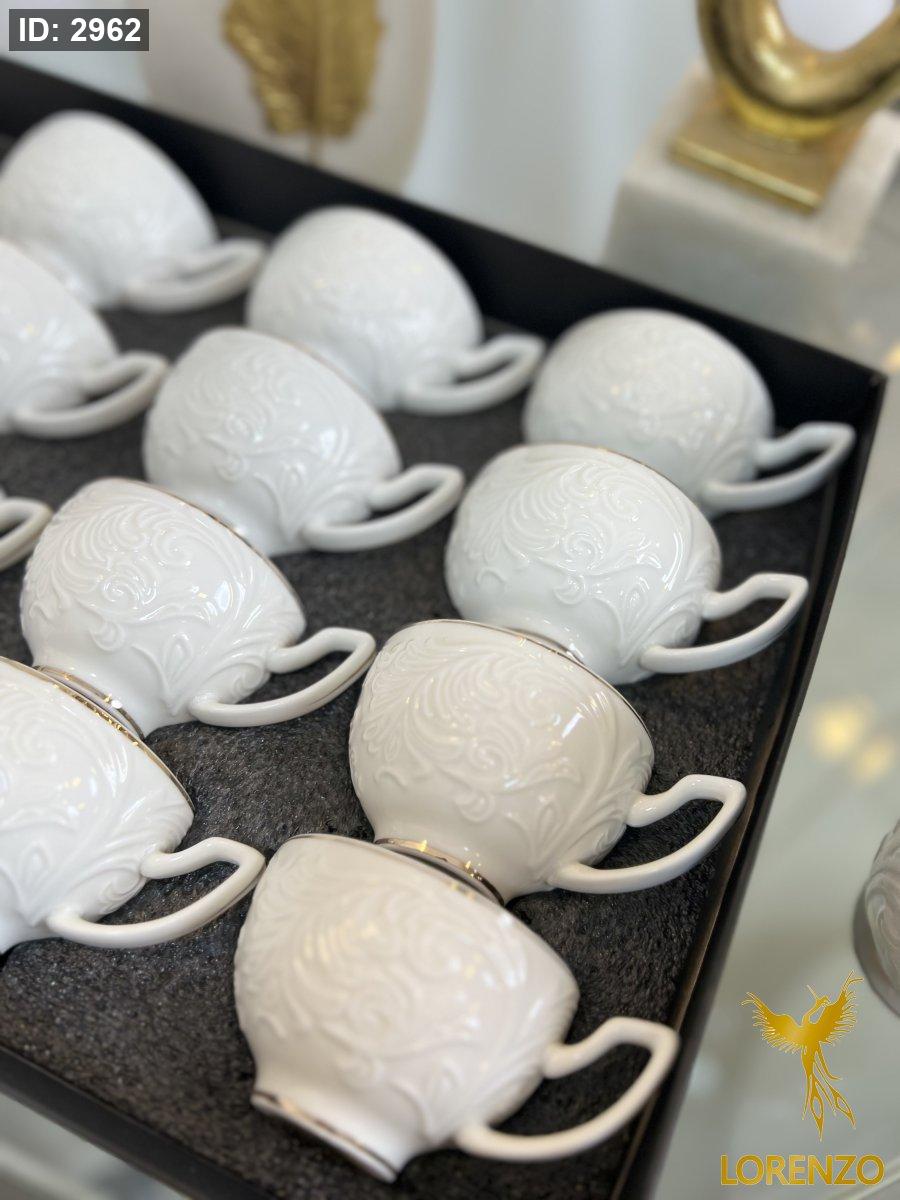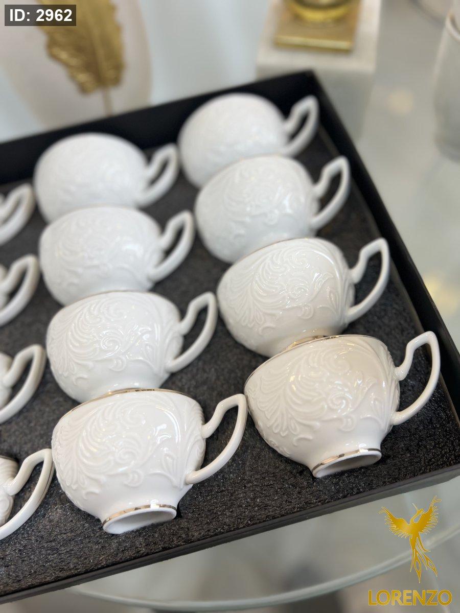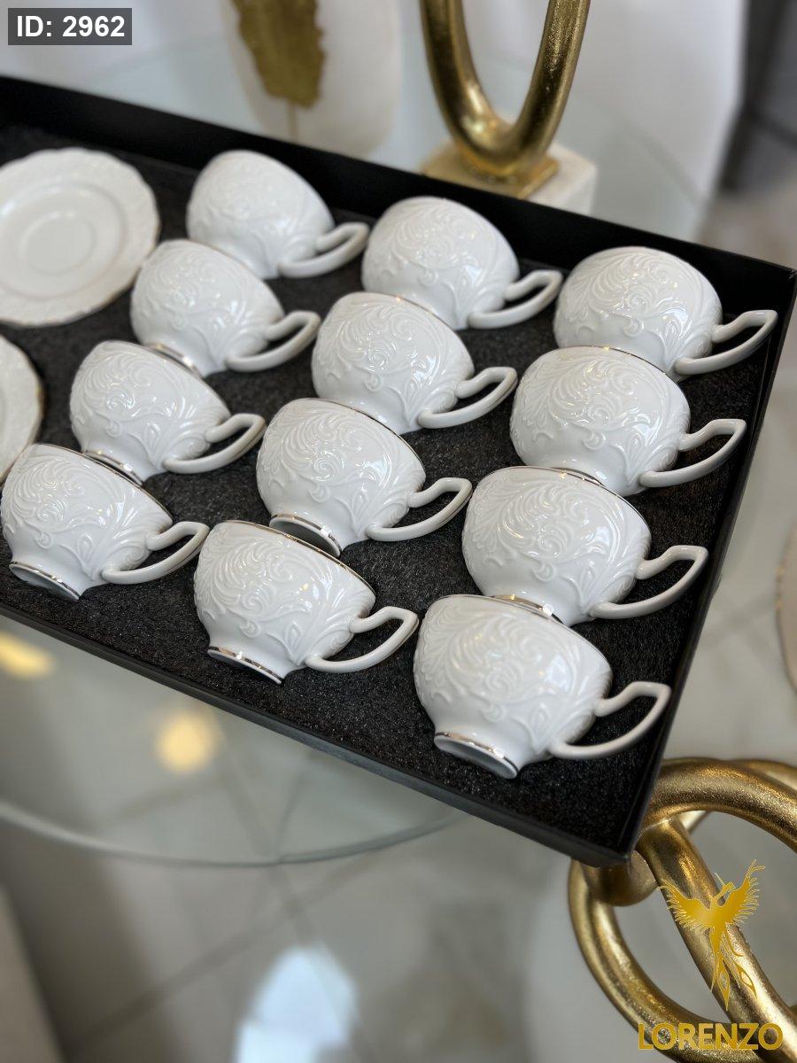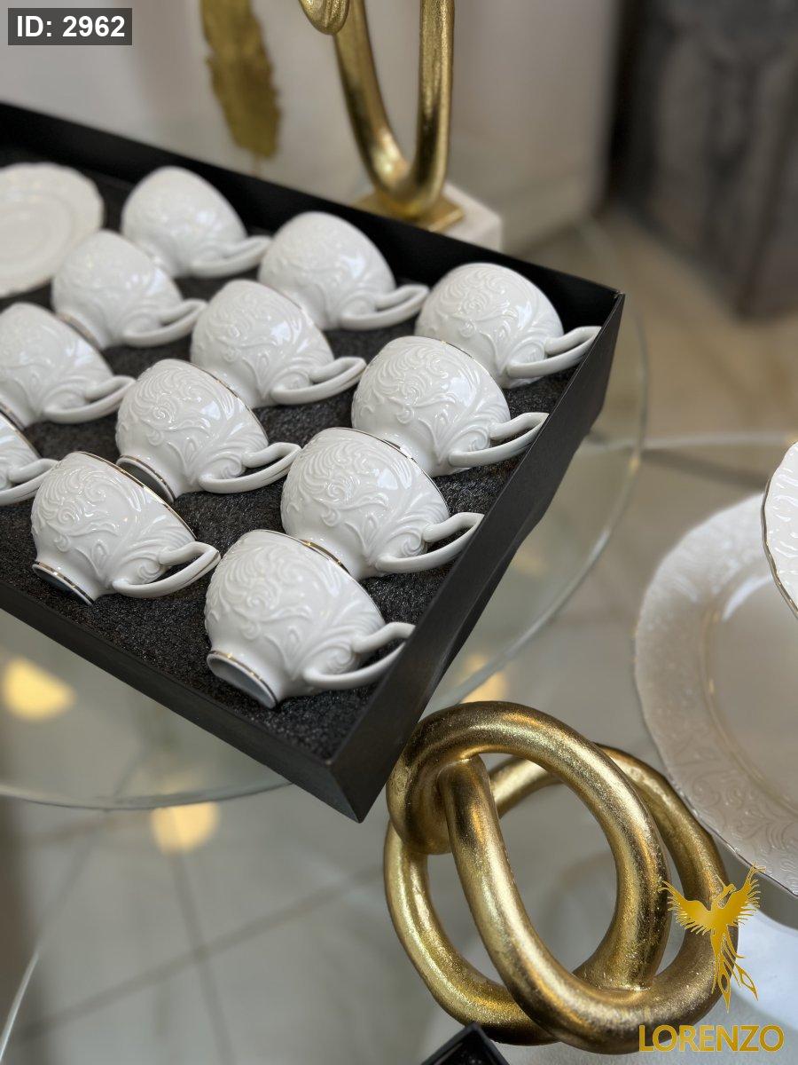 فناجين قهوة لون ابيض مزخرف ( 12 فنجان )