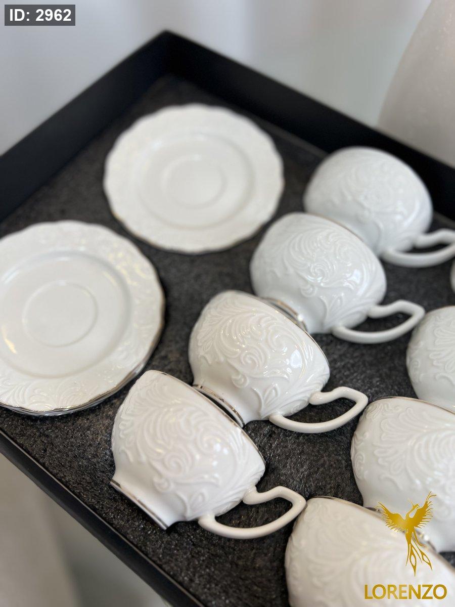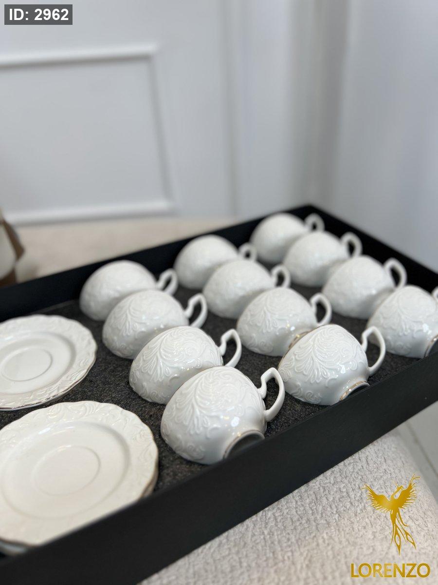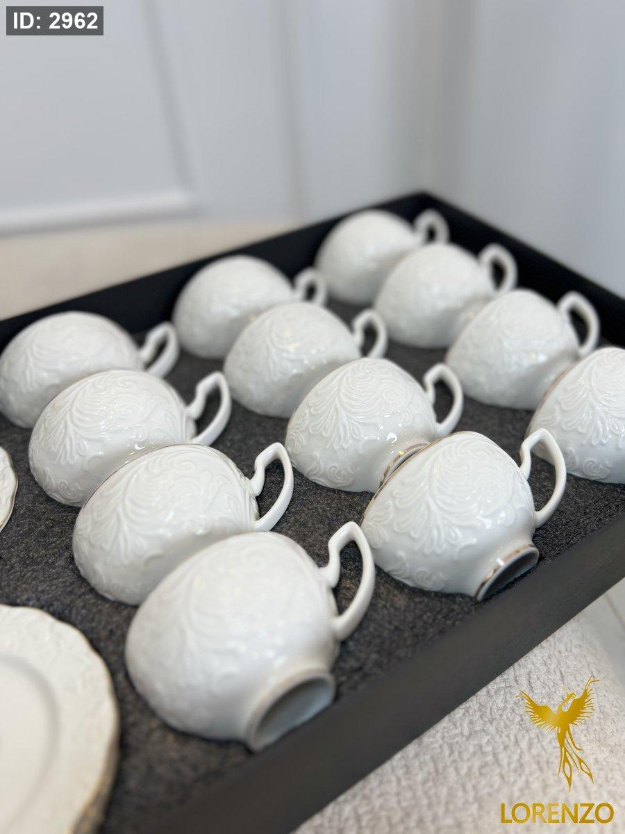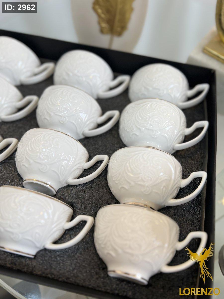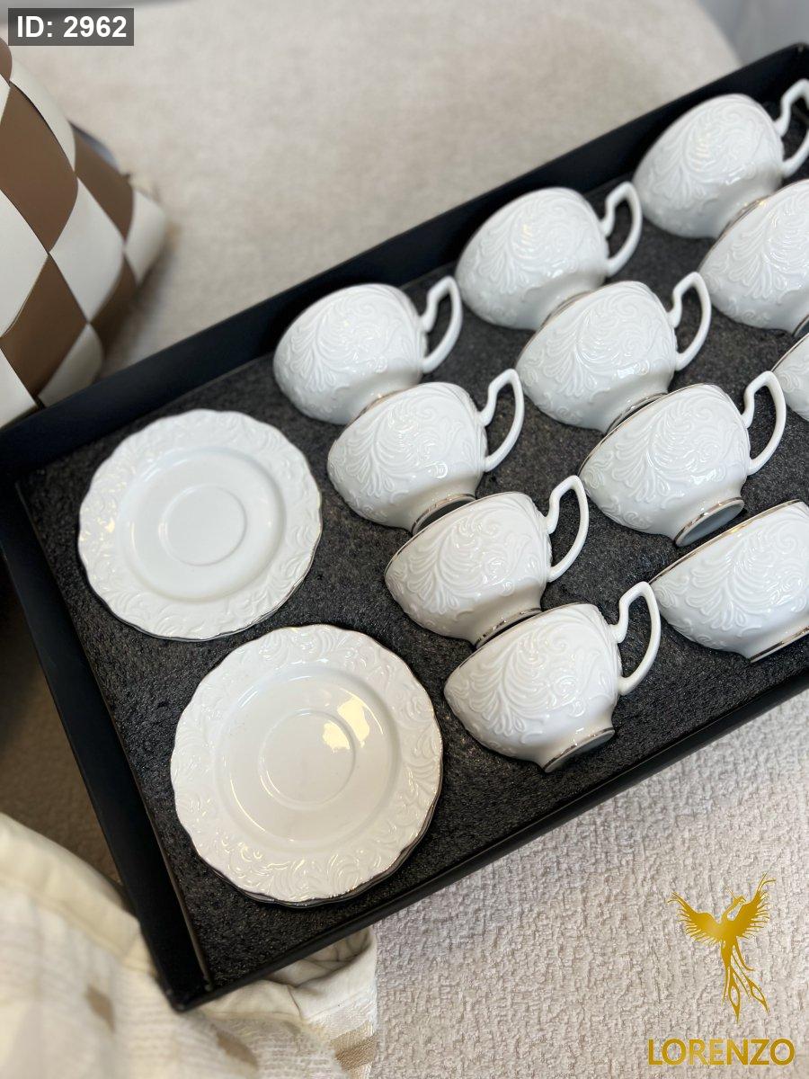 فناجين قهوة لون ابيض مزخرف ( 12 فنجان )