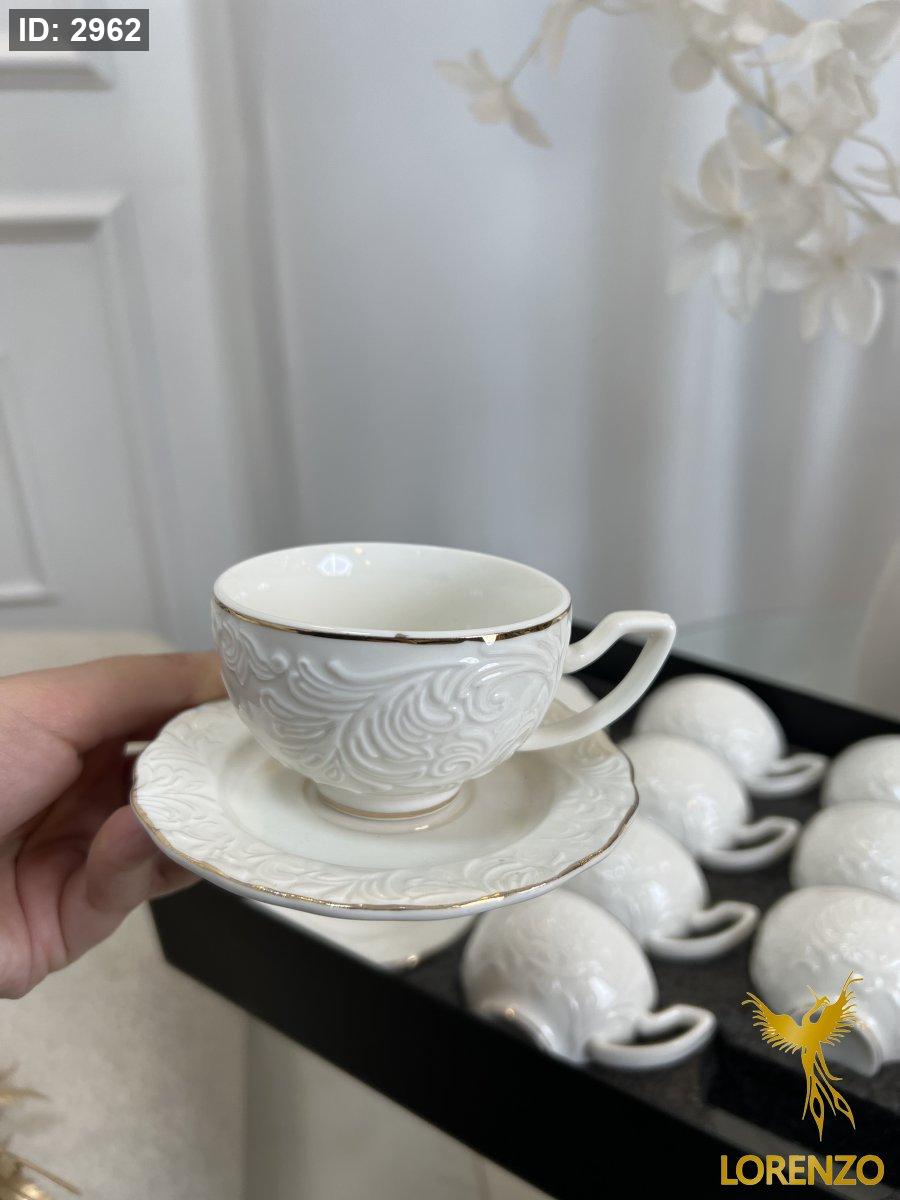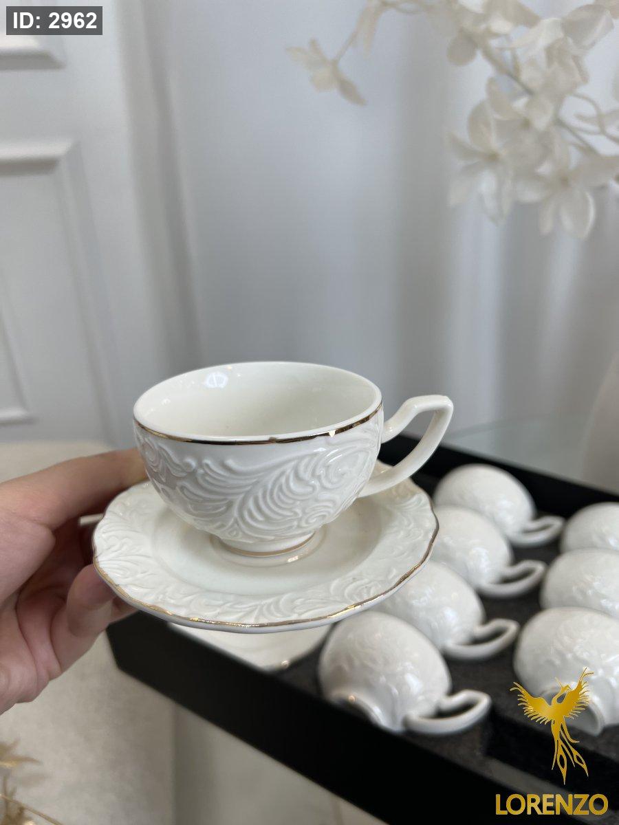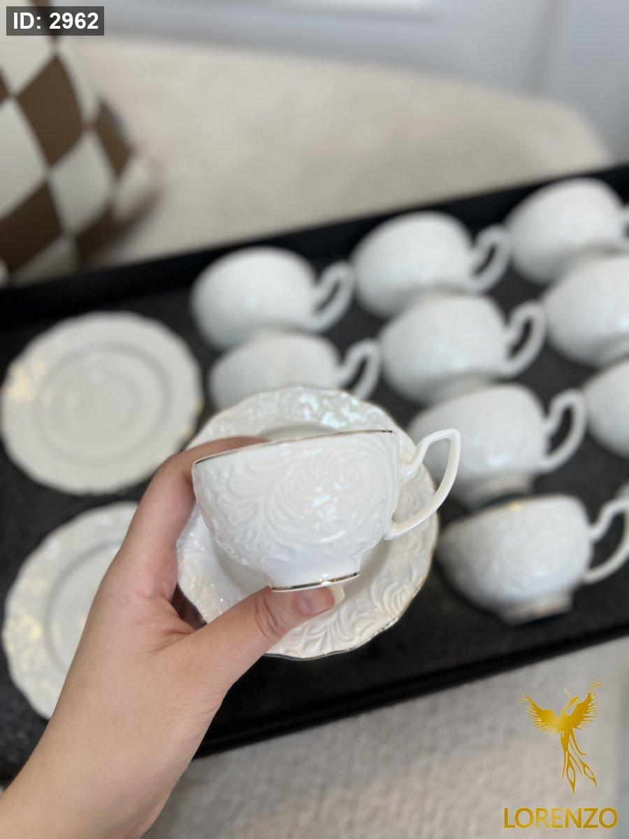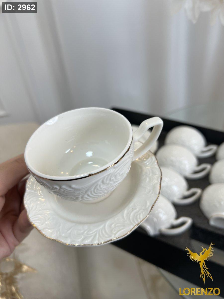فناجين قهوة لون ابيض مزخرف ( 12 فنجان )