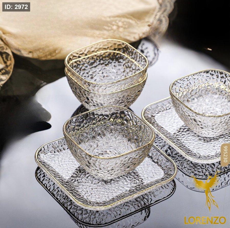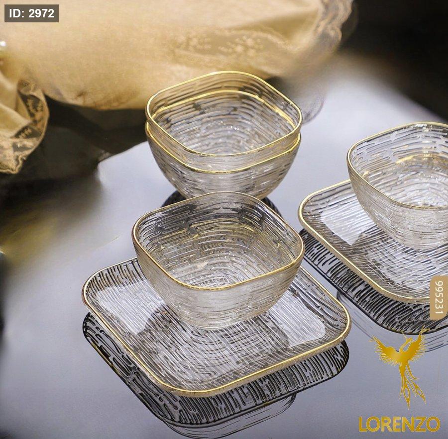 طقم زبادي زجاجي بحافة ذهبية من مجموعة ميستي (MISTY Collection).