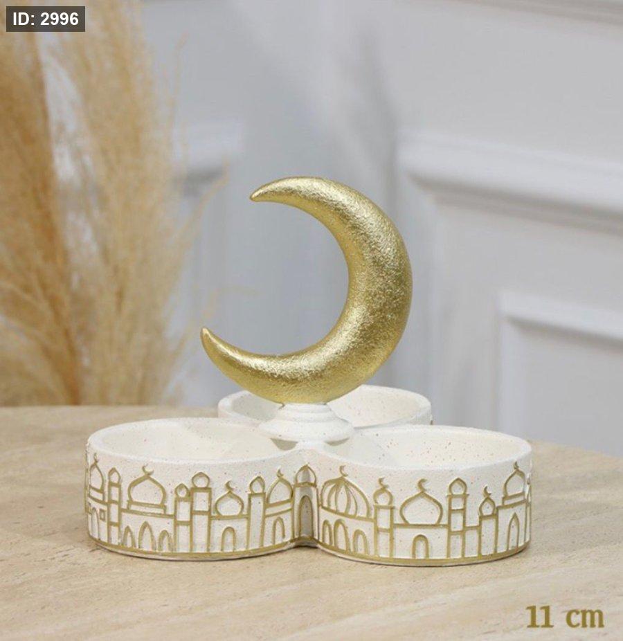 مضيفة مكسرات ثلاثية 11 سم جبص بيج مسكة هلال ذهبي
