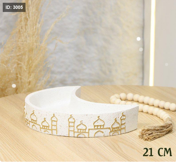 مضيفة جبص بيج 21سم شكل هلال مرسم مسجد ذهبي