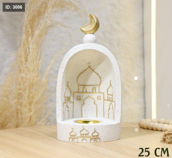 مبخرة فحم جبص بيج 25سم بيضاوي مرسم مسجد مسكة هلال ذهبي