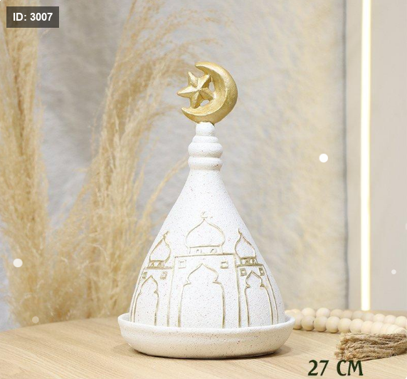 مضيفة جبص بيج 27سم شكل طاجن مرسم مسجد ذهبي