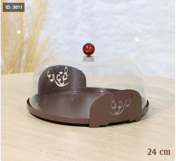 جاط كيك مدور 24سم تنك بني غطا اكرلك شفاف بيدين مكتب نورتونا مسكة طابة