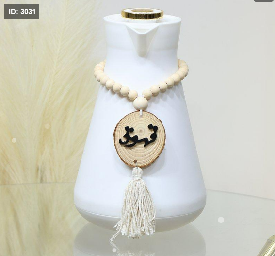 تعليقة تيرموس مسبحة خشب بيج مكتب قهوة شراشيب