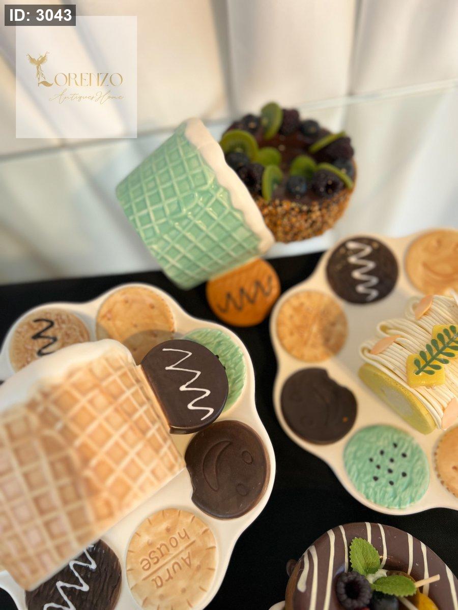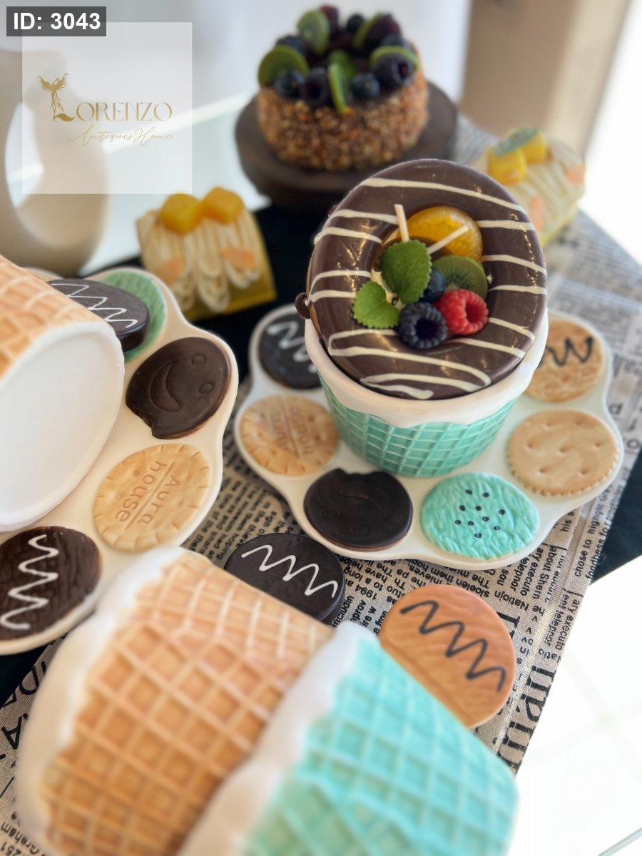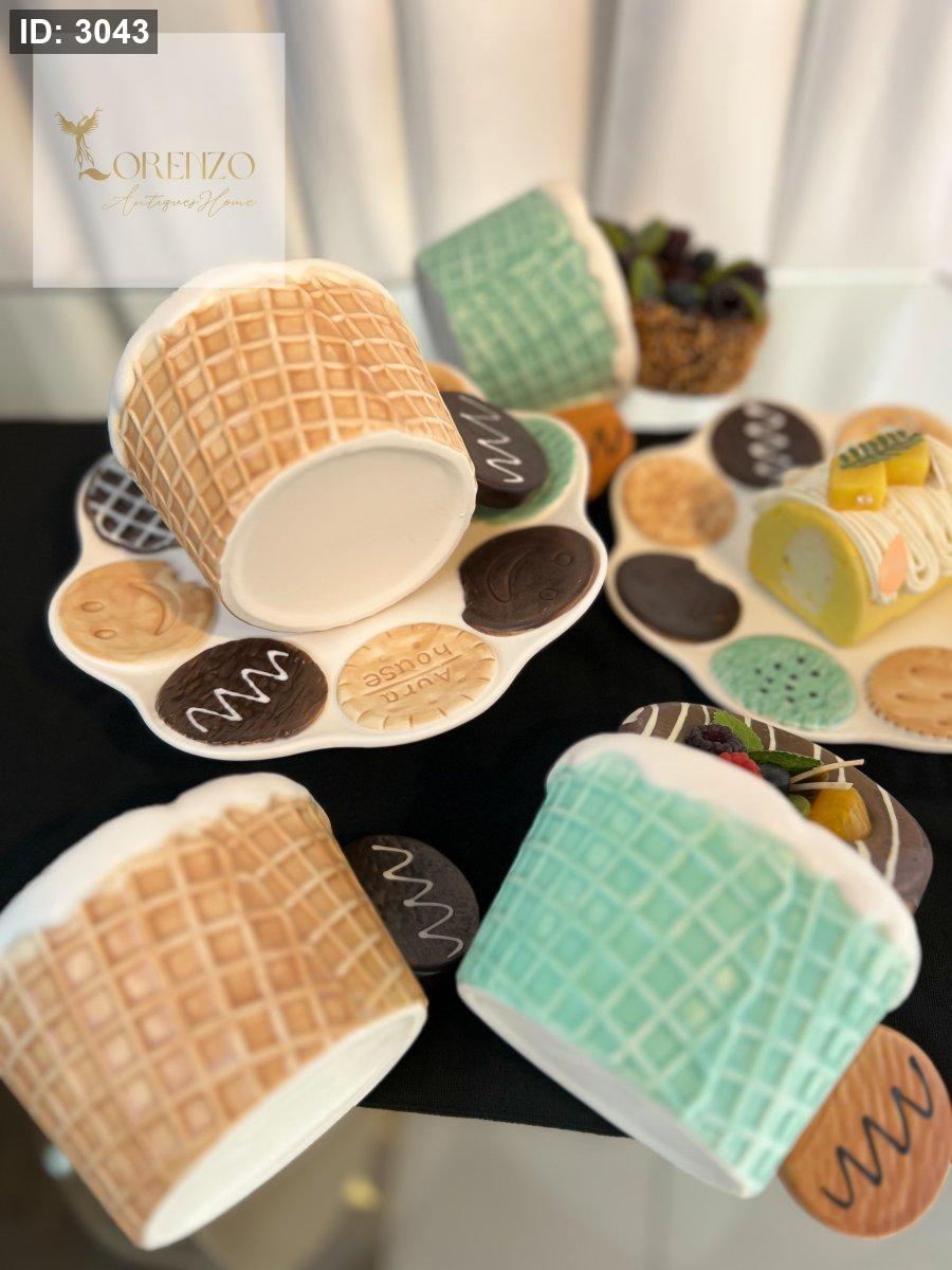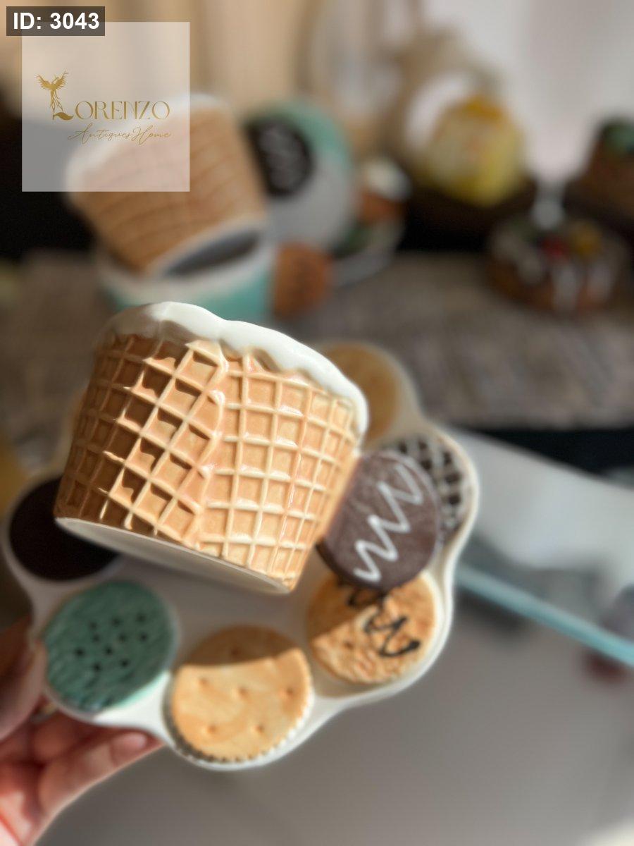 يتميز بتصميم مخروط بسكويت من الخارج وطلاء أبيض يشبه الآيس كريم الذائب من الأعلى.
