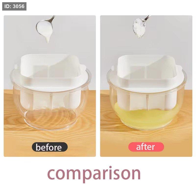 وعاء عملي بتصميم ذكي يساعدك على تصفية وتحضير المكونات بكل سهولة. يتميز بغطاء محكم مع مصفاة داخلية تتيح فصل السوائل عن الطعام بسرعة ونظافة، مثالي لتصفية اللبن، الفواكه، الخضار، أو غسل المكونات بدون فوضى.