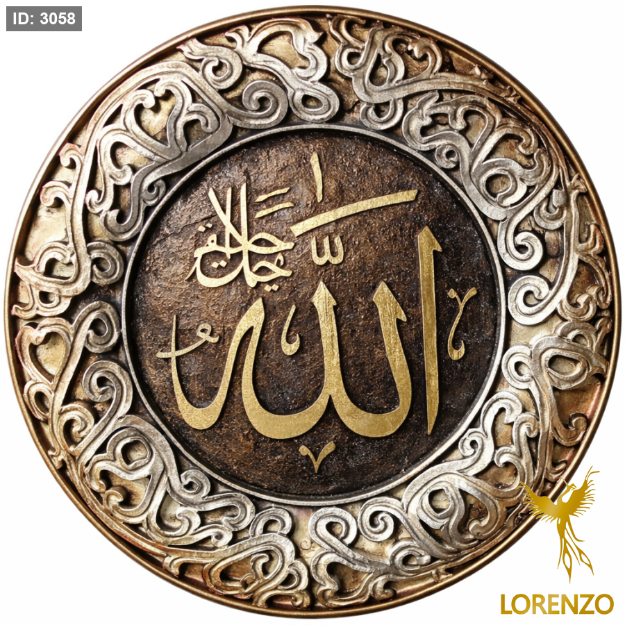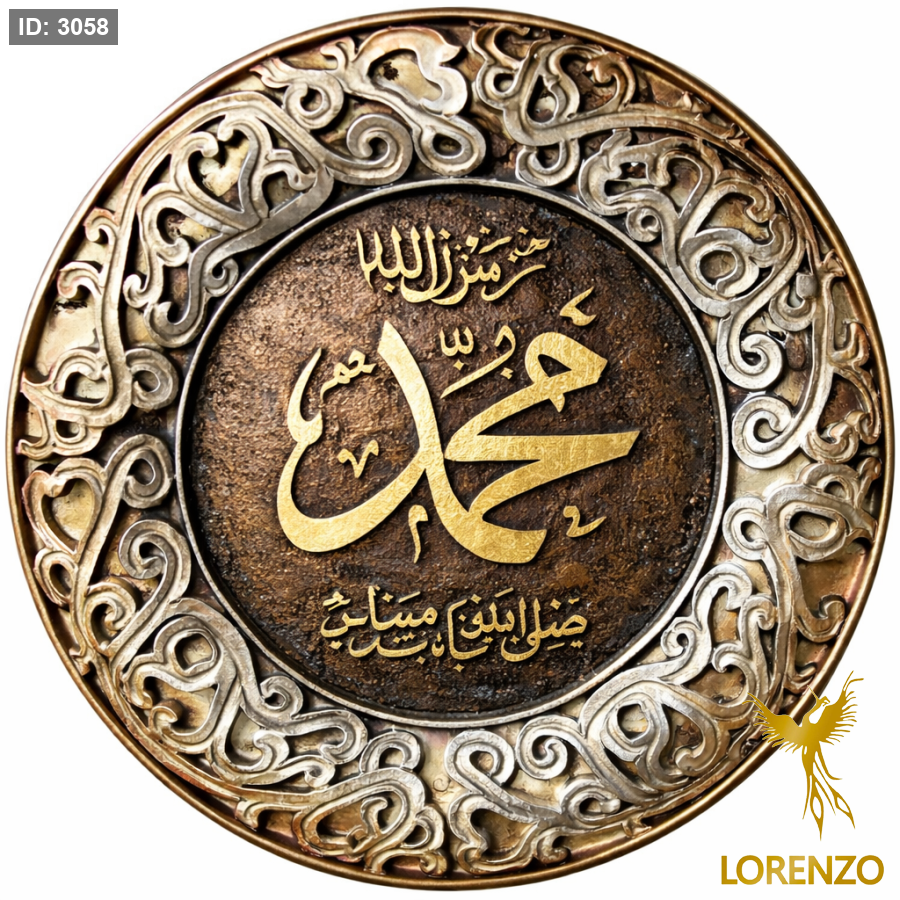برواز دائري إسلامي فاخر – تحفة فنية باسم الله ومحمد ﷺ