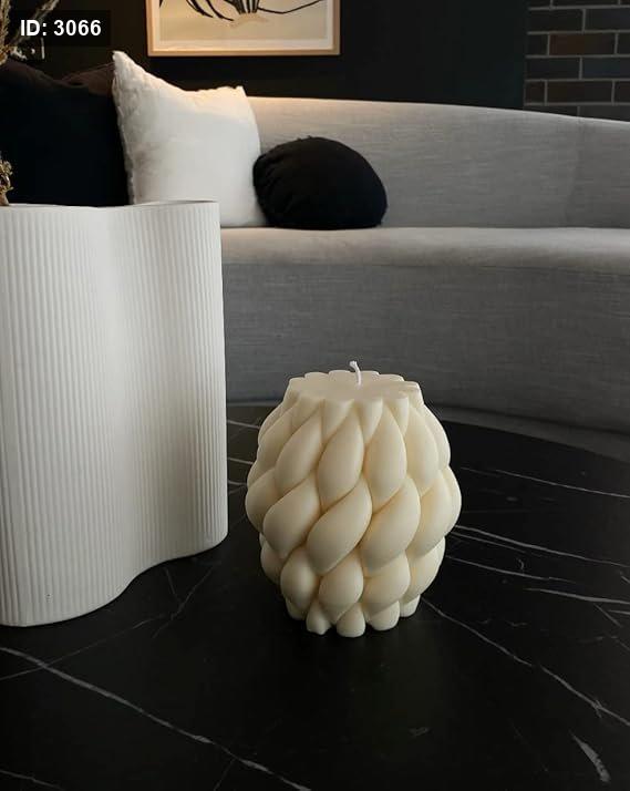 طقم شموع ديكور بتصميم مضفّر عصري، يتميز بشكل ناعم ومتداخل يضفي لمسة فنية راقية على ديكور المنزل. مثالي للتنسيق على الطاولات، الرفوف، أو زوايا الجلوس، ويمكن استخدام كل شمعة منفردة أو معًا لخلق تناغم أنيق.