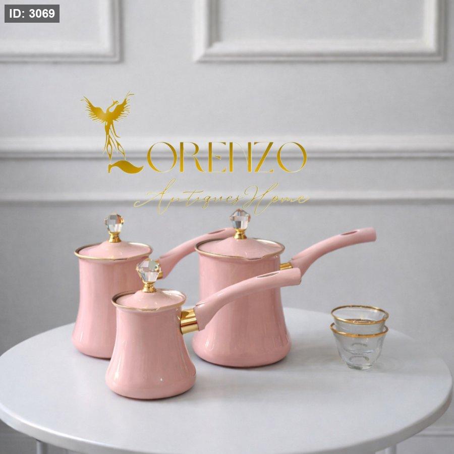 أضيفي لمسة أناقة ناعمة إلى مطبخك مع طقم غلايات القهوة التركية باللون الزهري، تصميم عصري راقٍ يجمع بين الجمال والعملية، مثالي لتقديم القهوة بأسلوب أنيق في كل الأوقات.