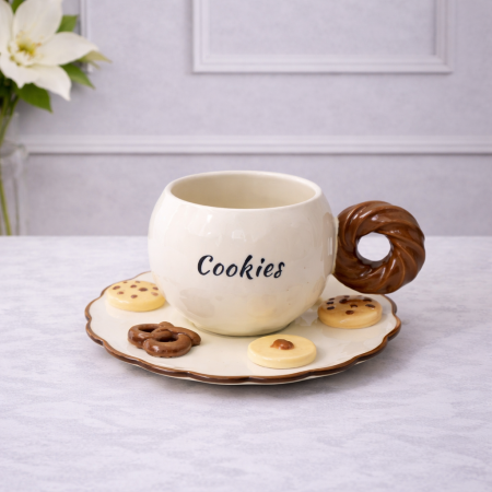 مج سيراميك أنيق بتصميم ناعم وأنثوي، يتميز بلون وردي هادئ مع نقش ربطة ببيونة بيضاء ونقاط رقيقة تضفي لمسة لطيفة وراقية. يأتي مع صحن سيراميك متناسق بنفس اللون والزخرفة، ليشكل طقم ضيافة متكامل يضفي إحساسًا بالنعومة والأناقة على طاولة التقديم.
