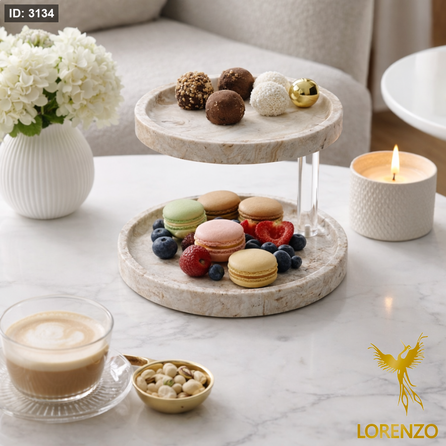 لأن تفاصيل الضيافة تعكس ذوقك، يأتي هذا الستاند بتصميم فاخر يجمع بين الأناقة العملية والفخامة الهادئة. قاعدة حجرية راقية تبرز جمال التقديم، مع غطاء أكريليك شفاف ومقبض ذهبي يمنح القطعة حضورًا أنيقًا ولافتًا على الطاولة.